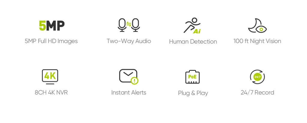 5MP Outdoor Surveillance Camera System, 8MP NVR, IR Night Vision, Waterproof PoE Security CCTV Kit
