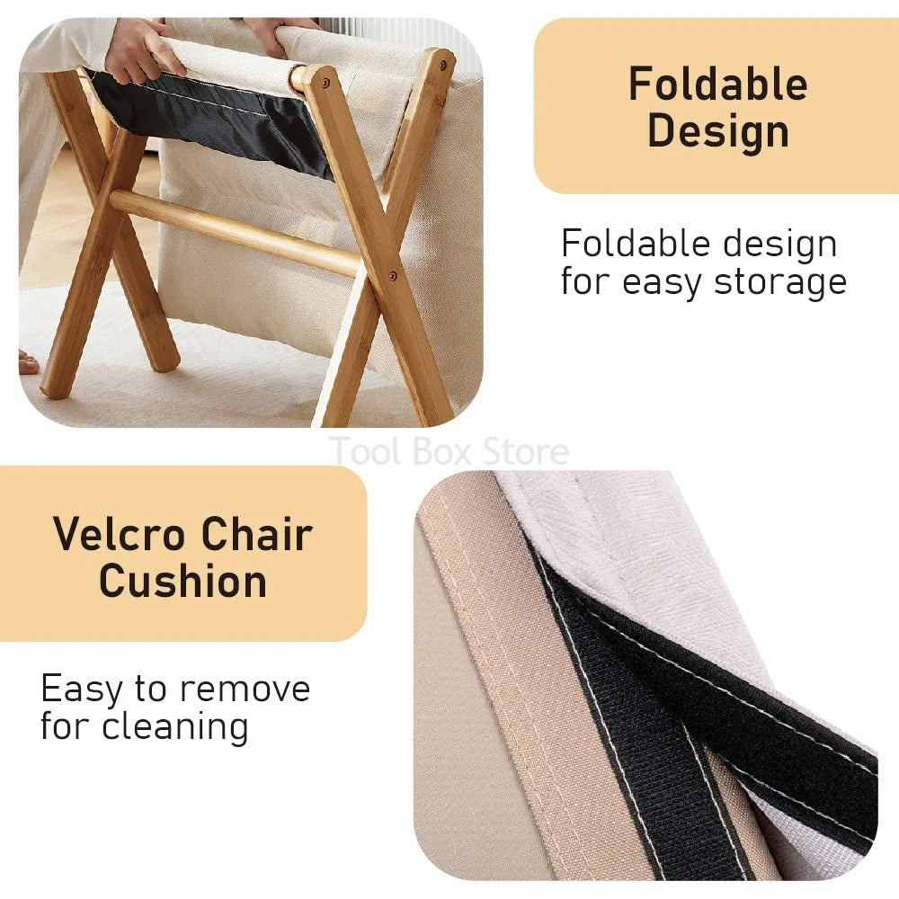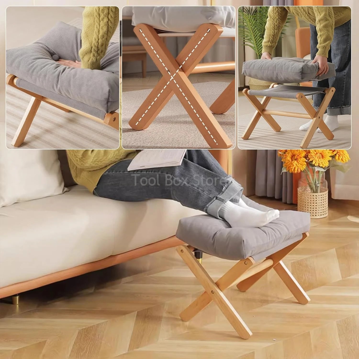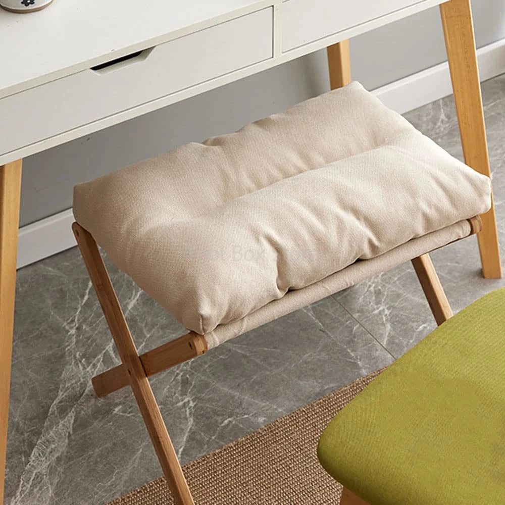 Enhance your living space with this versatile Folding Stool Chair. Designed for modern interiors, this multifunctional footstool offers both style and convenience. Crafted from 100% solid wood and cushioned with high-quality cotton cloth and high-elastic filling, it ensures comfort whether you're using it as a shoe stool or a footrest. Its foldable design allows for effortless storage, making it an ideal addition to any room in your home.