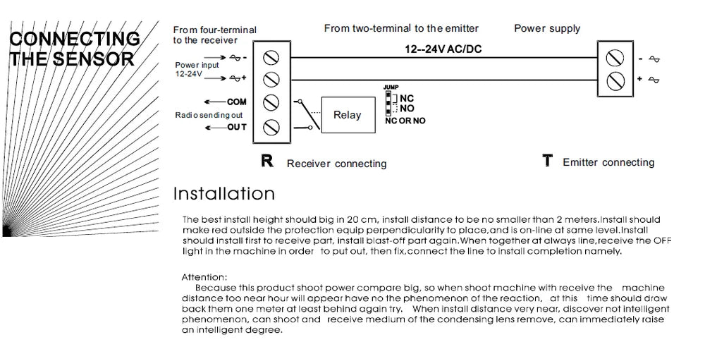 Enhance the security of your property with this IP65 automated gate safety infrared sensor, designed for swing, sliding, or garage gates and doors. This wireless, easy-to-install system features door and window sensors that create an infrared barrier when paired, triggering an alarm signal to your security system when breached. Ideal for schools, office buildings, hospitals, and home yards, this sensor maintains reliable performance even in challenging weather conditions. Installation is straightforward with an English user manual included.