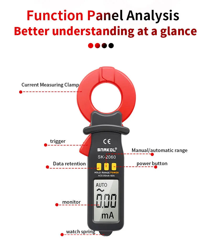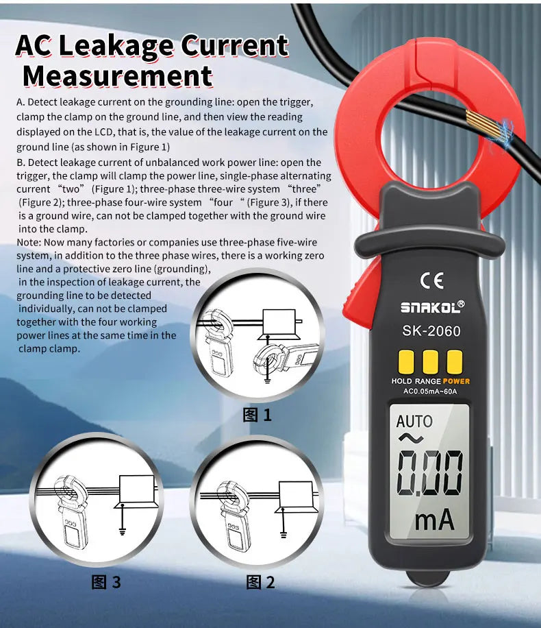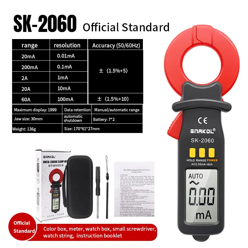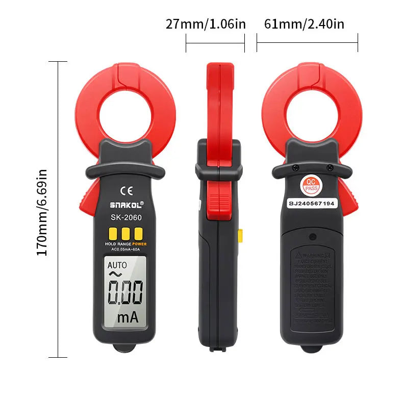 Digital Clamp Meter Professional Leakage Tester 20mA-60A Auto Range Precision 0.01A
