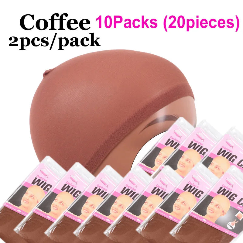 Transform your hairstyle with our versatile stocking wig caps, available in six stylish colors: black, white, dark brown, light brown, beige, and coffee. These hairnets provide a comfortable and secure fit with their free size design, making them perfect for all-day wear. Each pack comes with 2 pieces, and with a total of 10 packs, you'll have 20 pieces to ensure you have enough for every occasion.