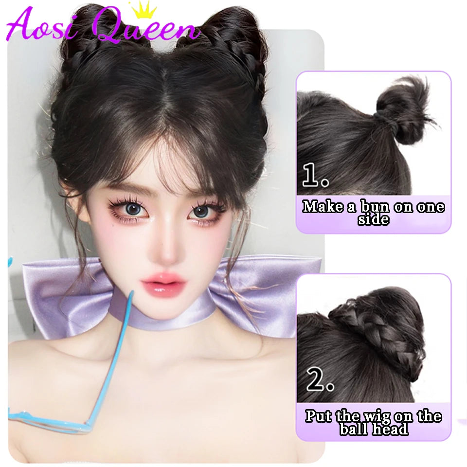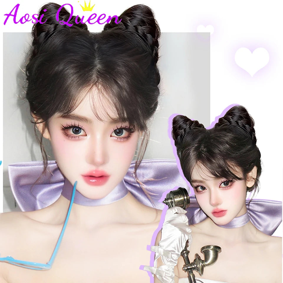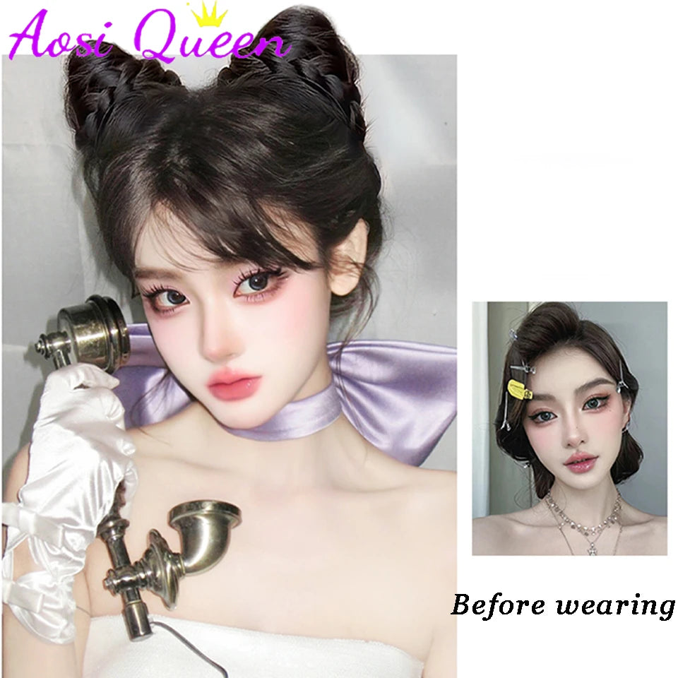 Fluffy Updo Hair Clip Wig with Cat Ear Shape for Volume Boost - Croissant Style Bag Accessory