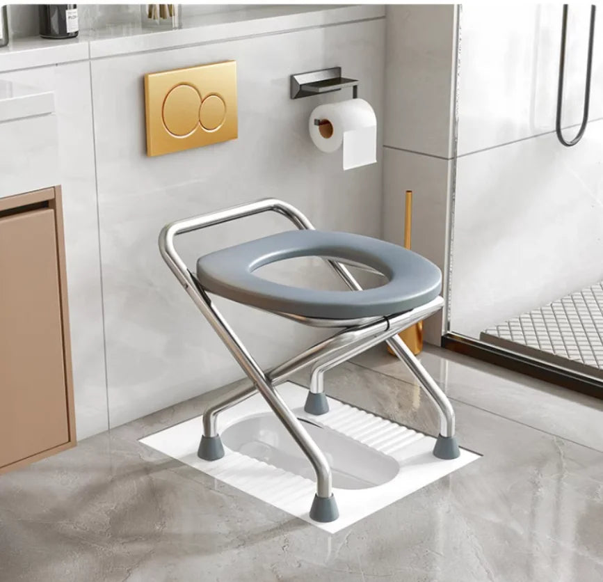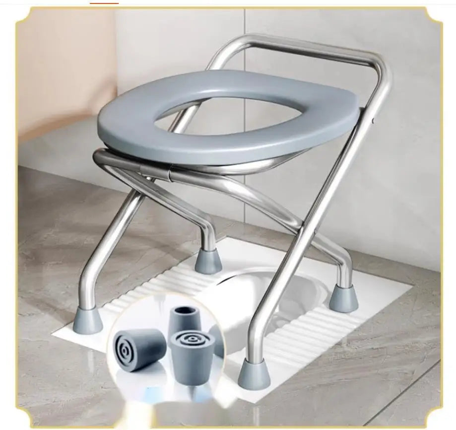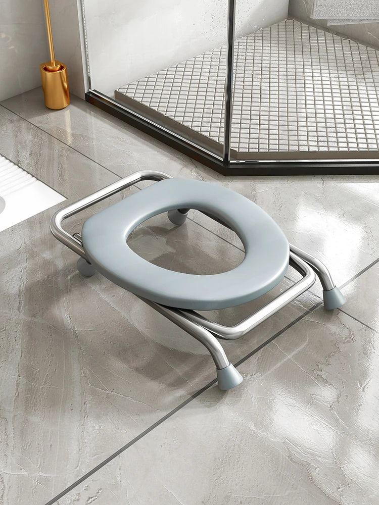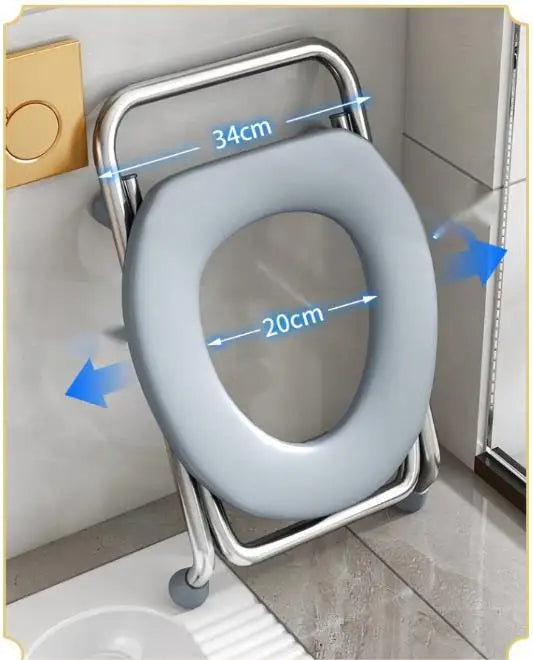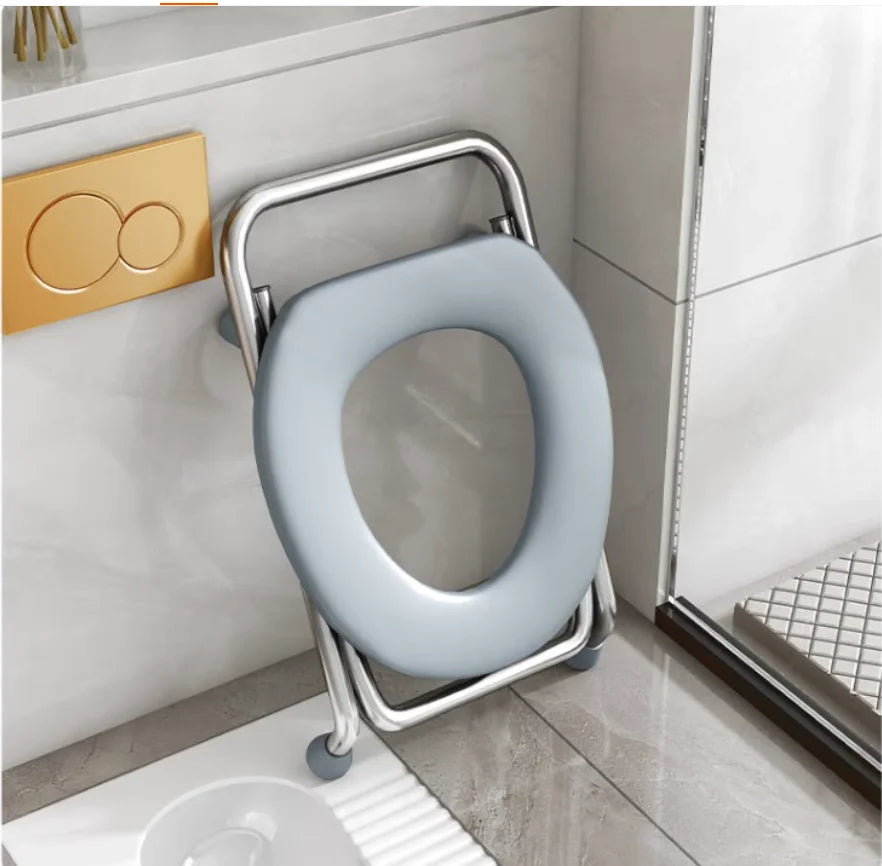 Introducing the versatile foldable toilet stool, designed to enhance comfort and ease in various settings. Crafted from durable stainless steel and a sturdy hard plastic seat, this stool caters especially to the needs of the elderly, pregnant women, and anyone requiring a more supportive seating option for squat toilet renovations or bathing.