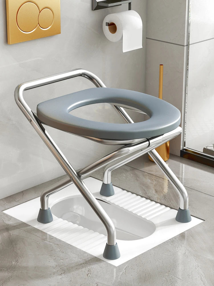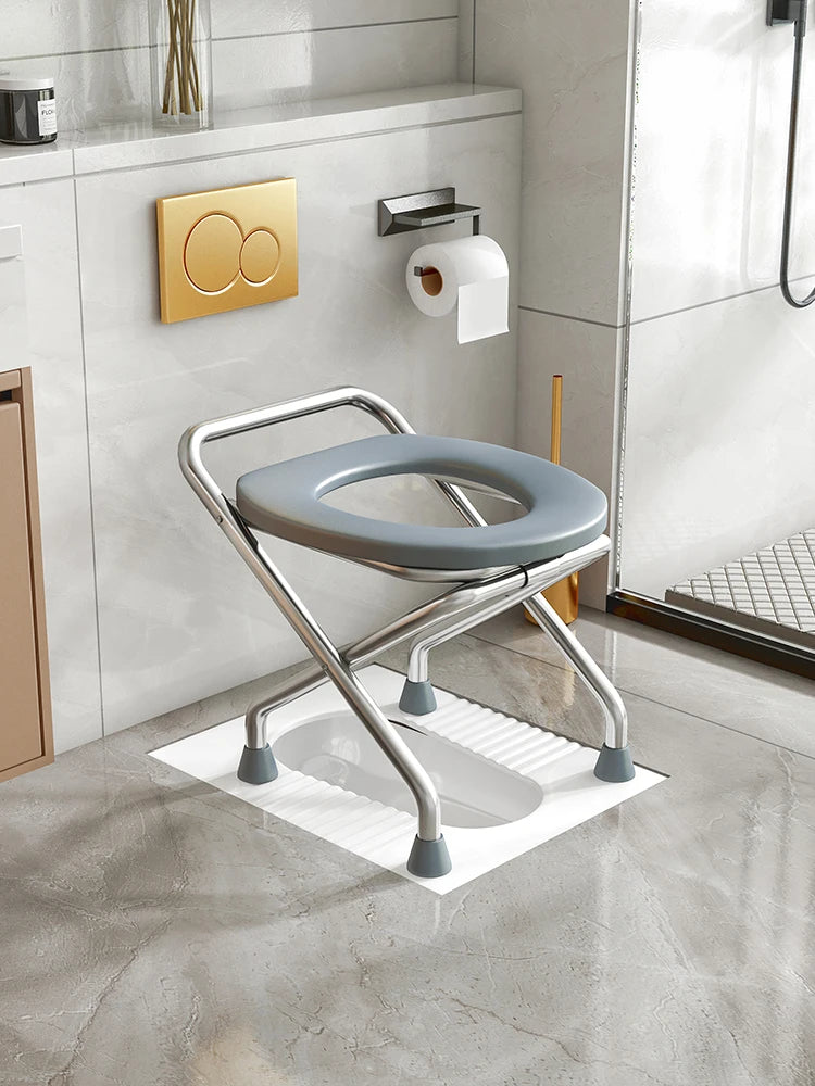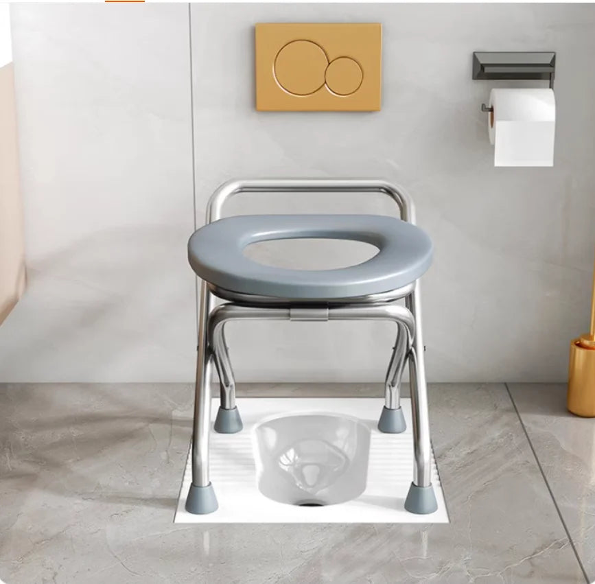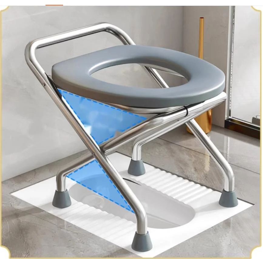 Introducing the versatile foldable toilet stool, designed to enhance comfort and ease in various settings. Crafted from durable stainless steel and a sturdy hard plastic seat, this stool caters especially to the needs of the elderly, pregnant women, and anyone requiring a more supportive seating option for squat toilet renovations or bathing.