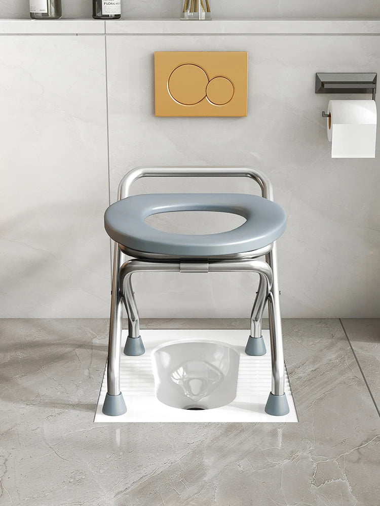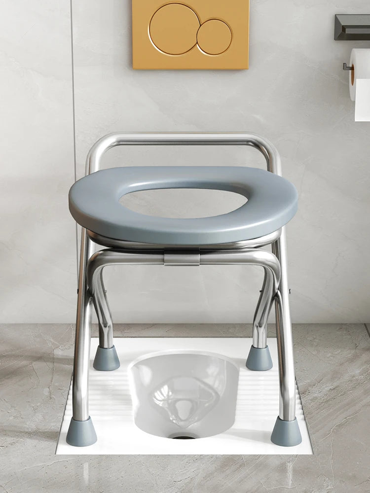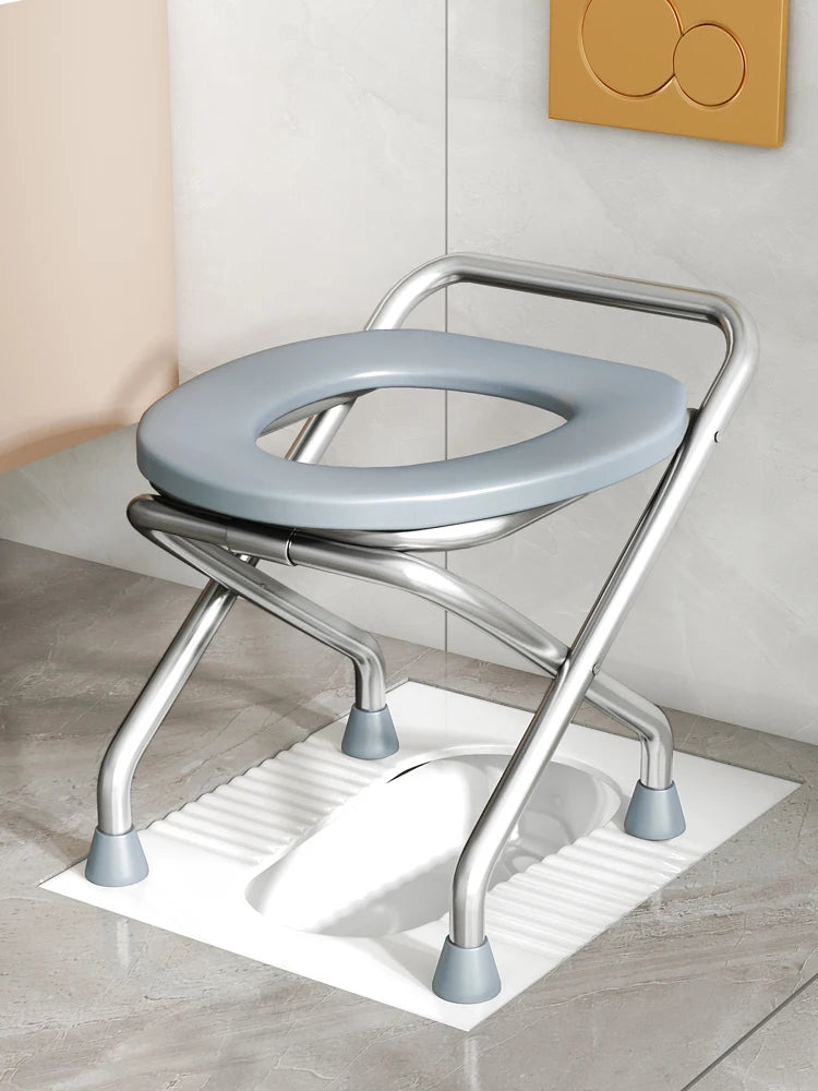 Folding Stainless Steel Toilet Chair for Elderly & Pregnant - Mobile & Convenient Home Squat Stool with Storage