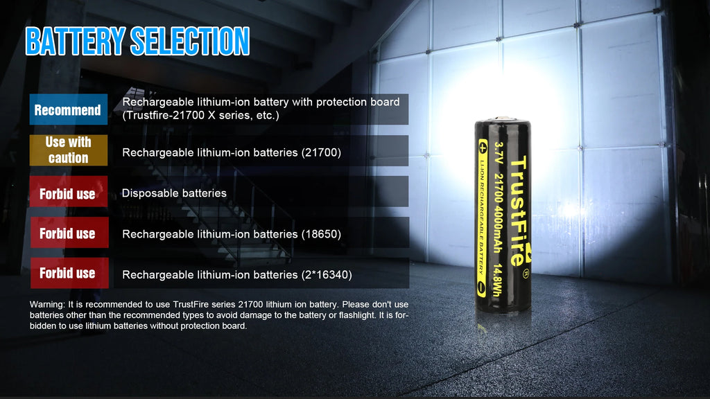 - Battery Recommendation: Use with Trusted 21700 Lithium-ion Batteries with Protection Board