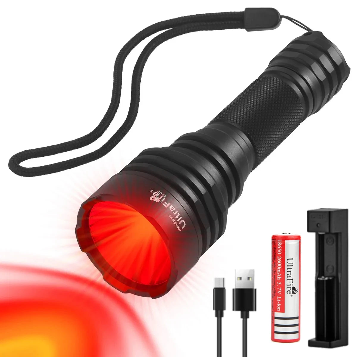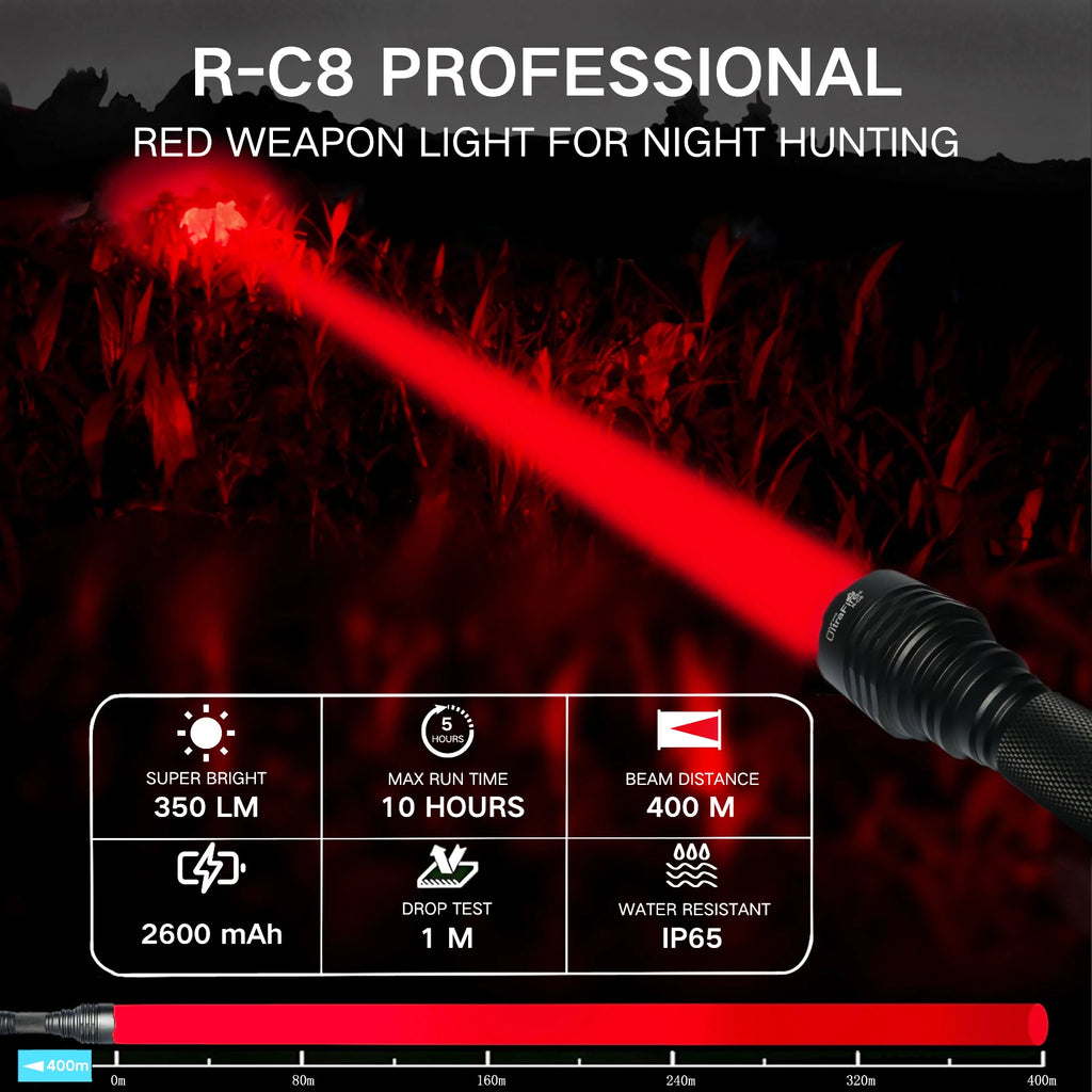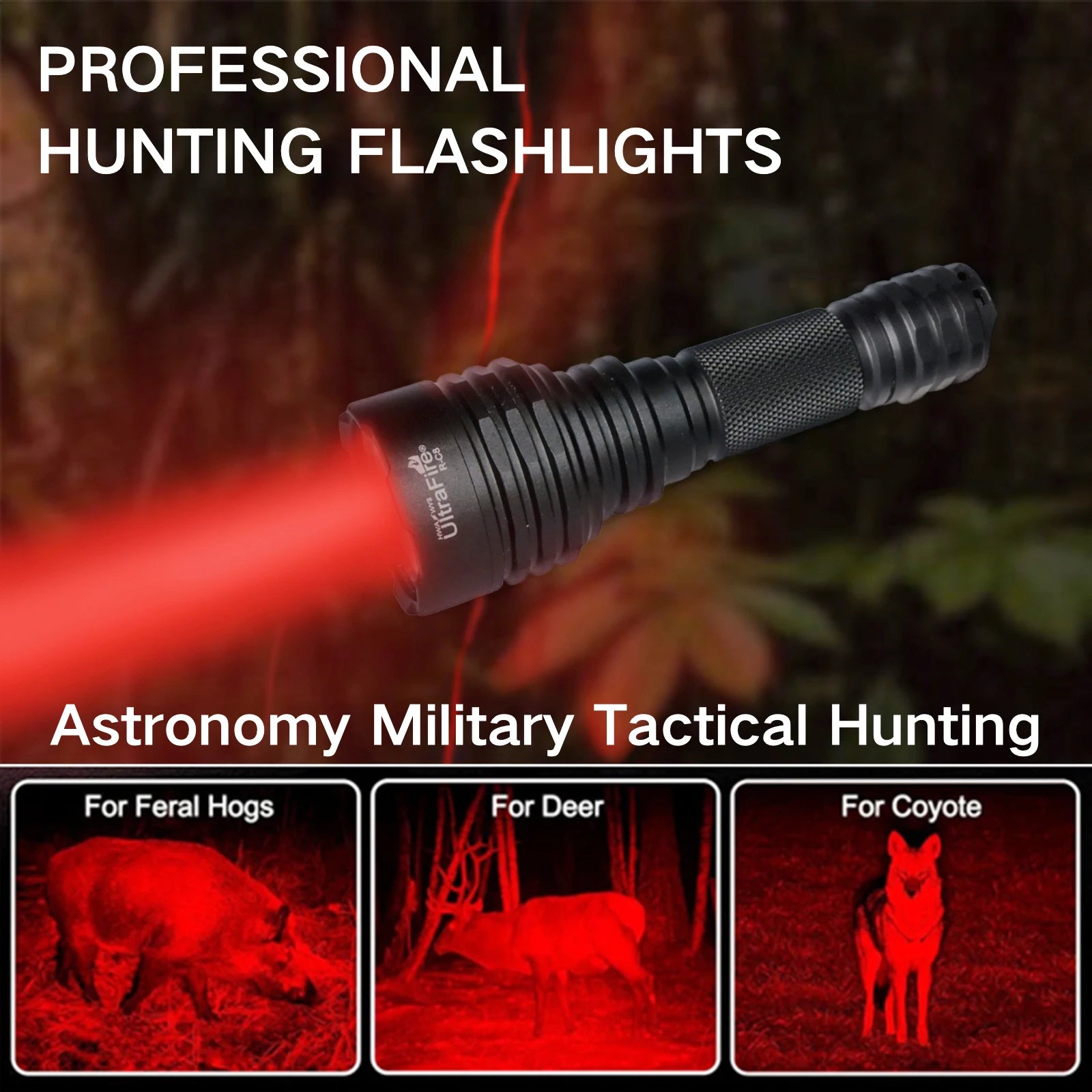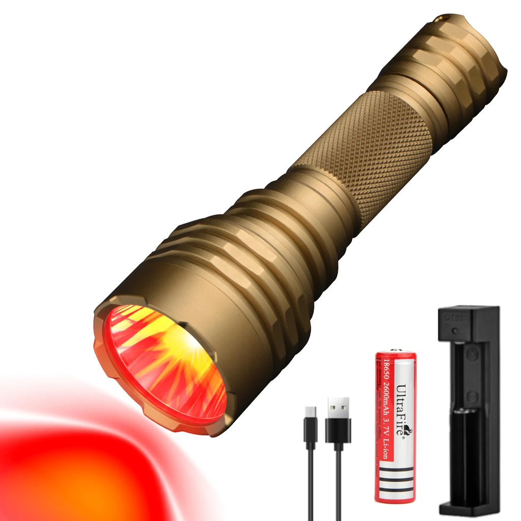 Powerful Red Light LED Flashlight 350m Focus Tactical Lantern Night Hunting Spotlight for Coyote Hogs Rabbit