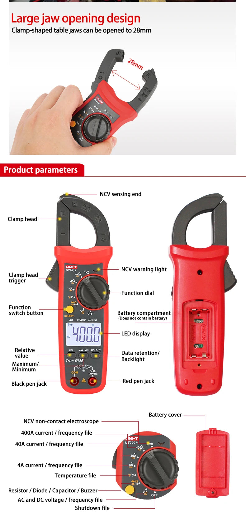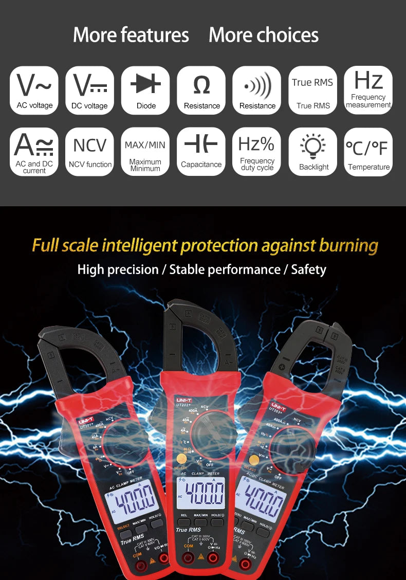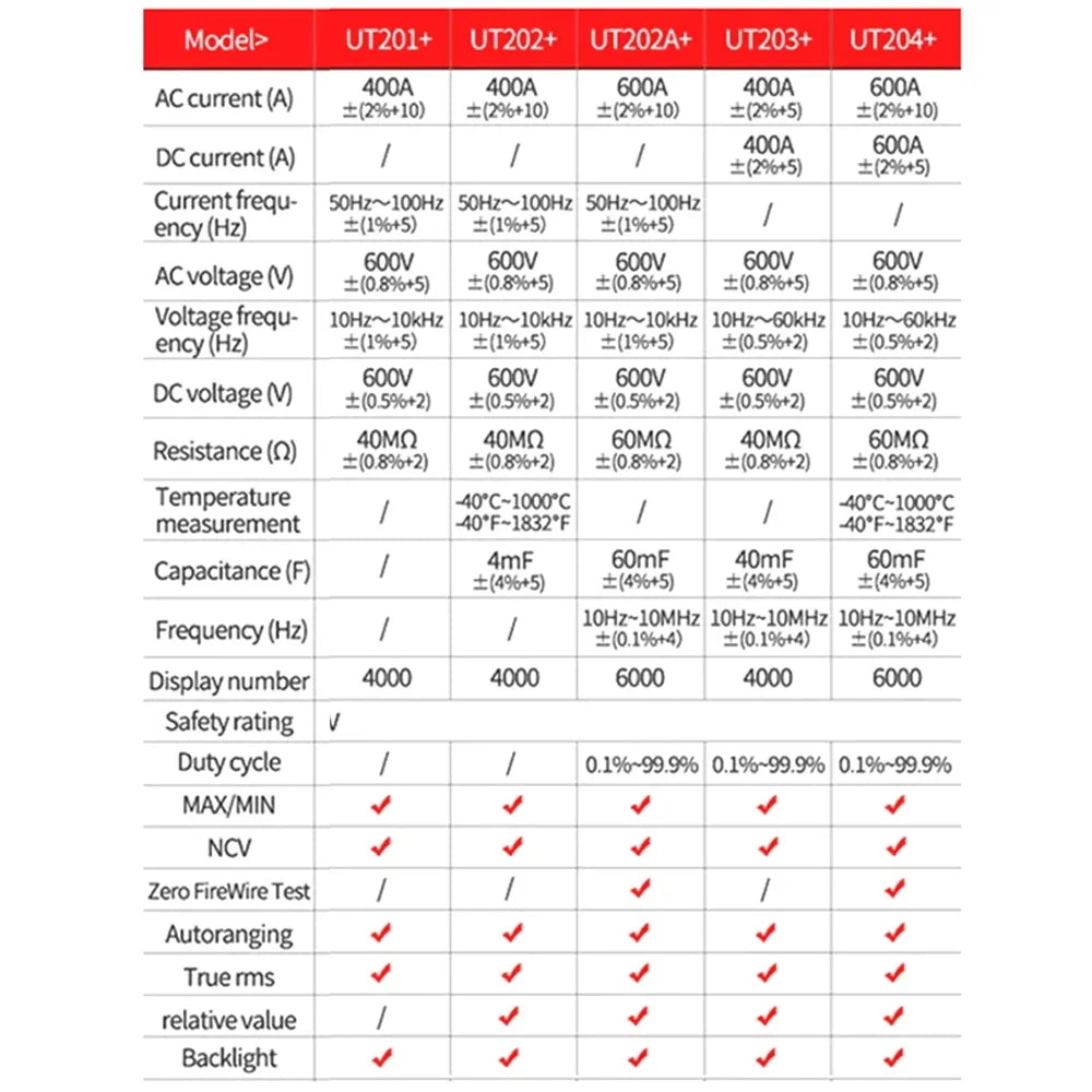 Digital Clamp Meter UT201 Series: Voltmeter Ammeter Multitester Pliers for Electric Testing
