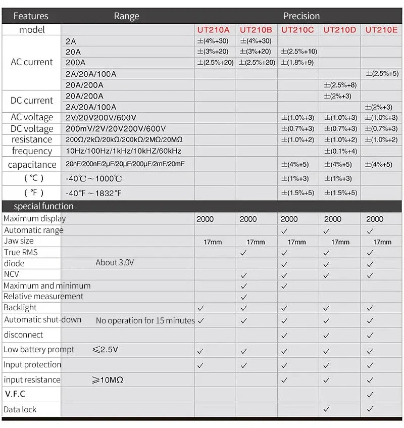 Digital Clamp Meter Ammeter Pliers UT210E UT210D UT210C UT205E UT208B UT207B UT206B