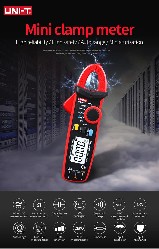 The UT210 Series Mini Clamp Meters are expertly crafted for challenging, compact spaces. These versatile tools are perfect for maintaining mechanical and electrical equipment, installing home appliances, and executing electrician tasks. With a display count of 2000, this series ensures accuracy and reliability in every reading, making it an essential addition to any toolkit.