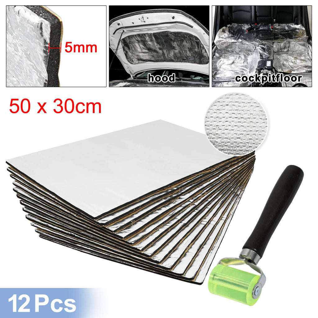 Car Sound Deadening Mat 50x30cm Noise Insulation Foam Anti-Heat 5mm/10mm With Roller Installer Tool