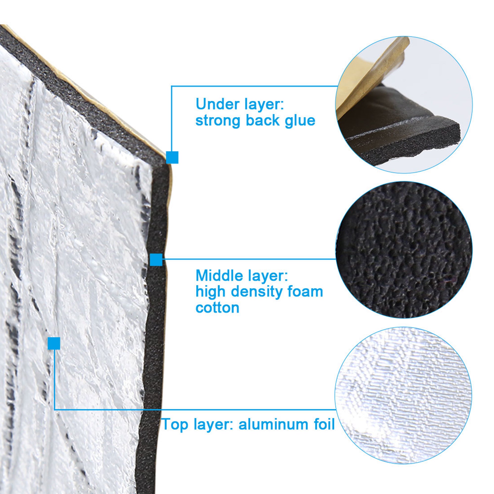 This versatile sound insulation sheet can be easily installed on various parts of your vehicle including the hood, car doors, trunk, chassis, fender, and roof. Crafted from durable aluminum foil, it boasts a thickness of 5mm to deliver optimal soundproofing and insulation.