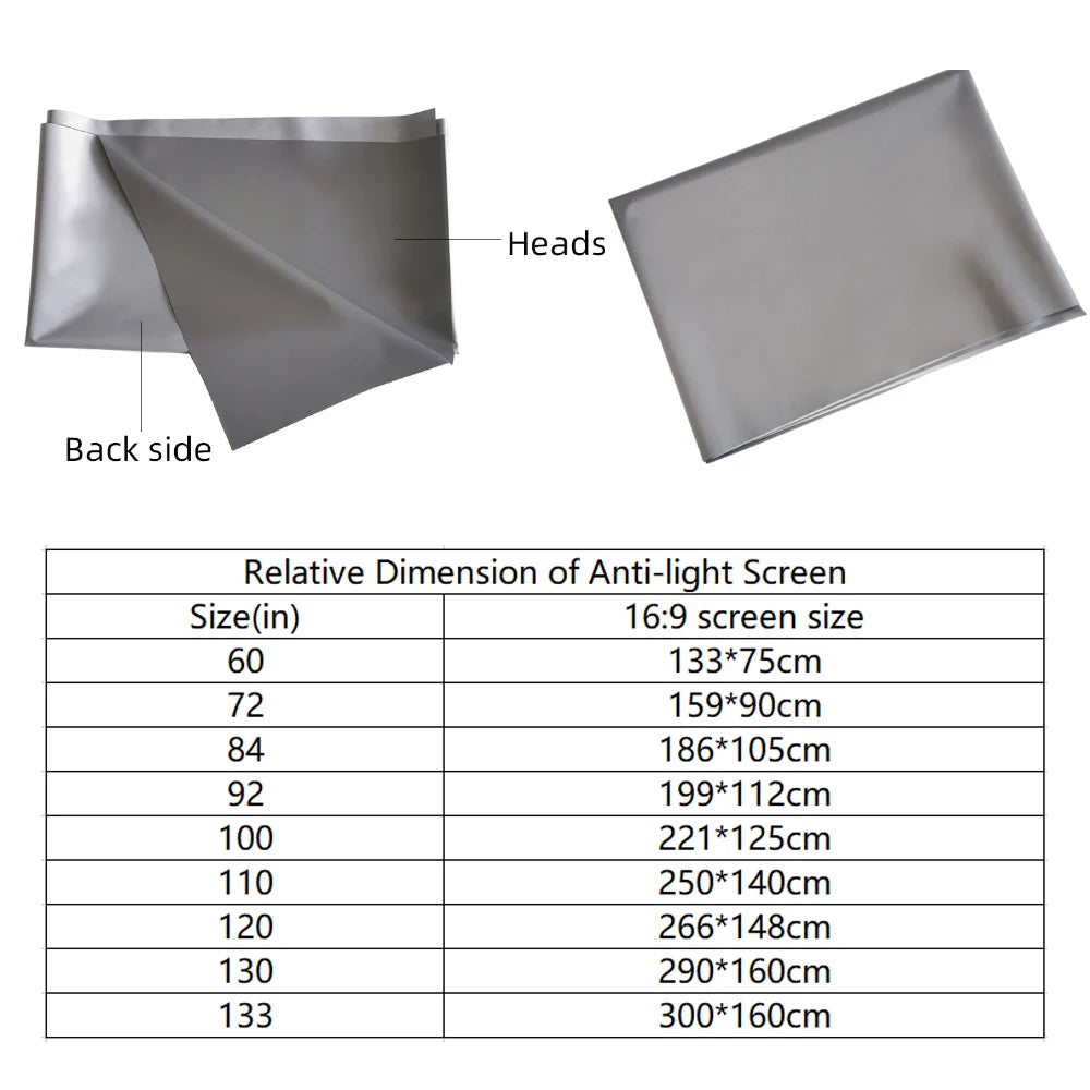 Foldable 16:9 Anti-Light Grey Projection Screen, 100-133 Inch, Portable Reflective Cloth for Home Theater