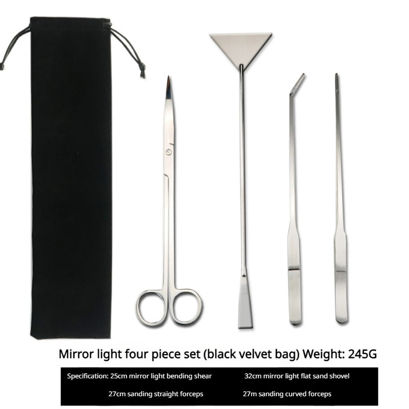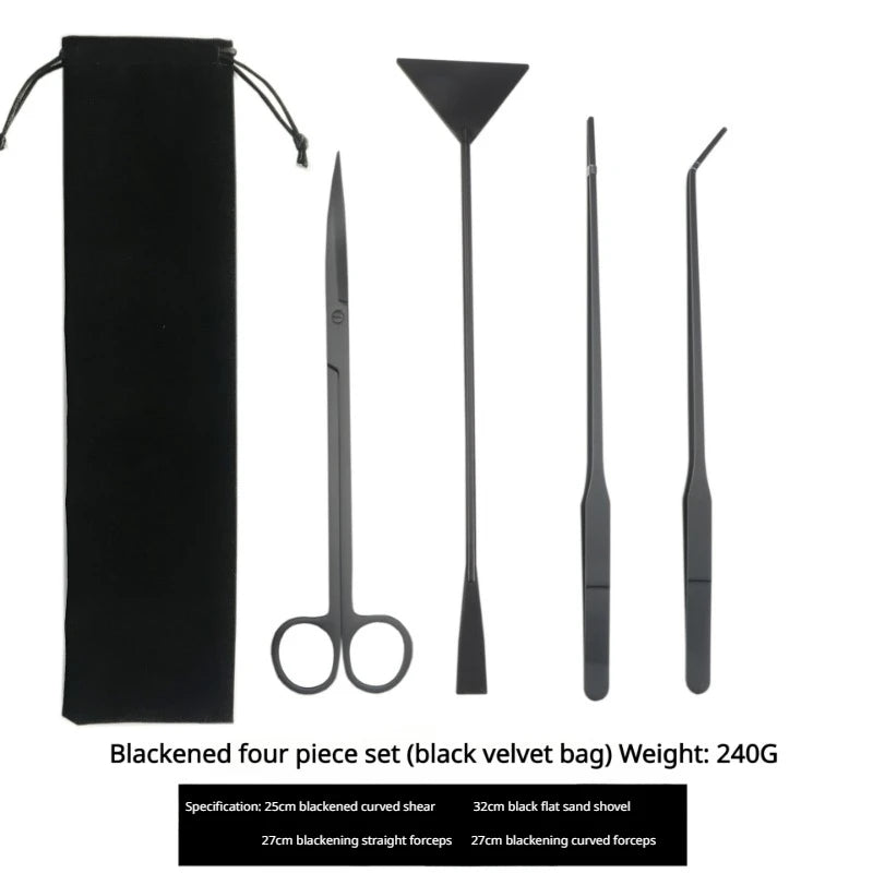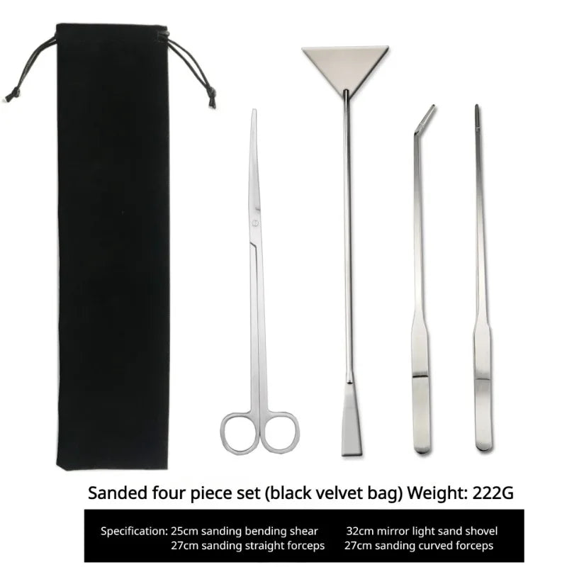 - Complete Tool Set: Includes 25cm curved scissors, 32cm flat sand shovel, 27cm straight forceps, and 27cm curved forceps.