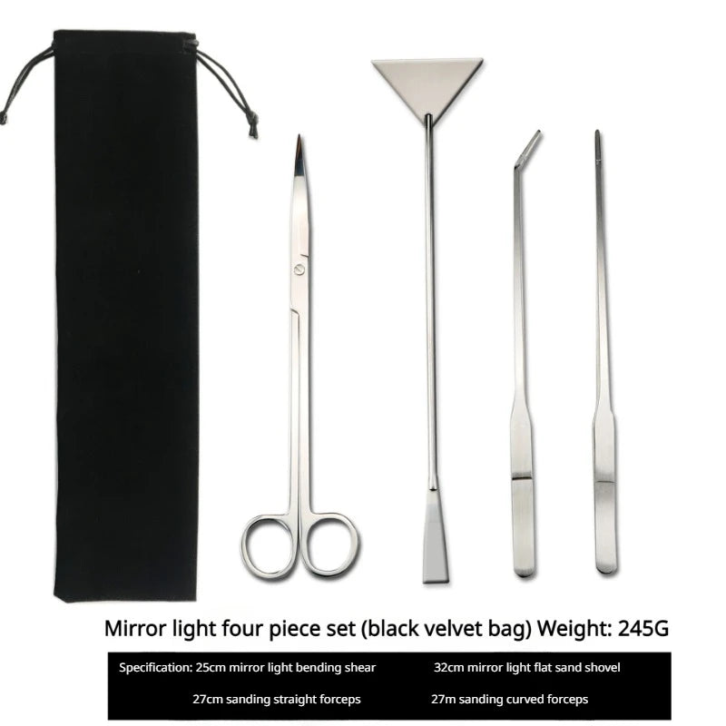 Enhance your aquarium care routine with the Fish Tank Water Grass Scissors Set, designed for both precision and longevity. Constructed from high-quality stainless steel, these rust-resistant tools are your go-to solution for vibrant aquatic life. This comprehensive kit features four essential tools tailored for both gardening and maintenance in your tank.