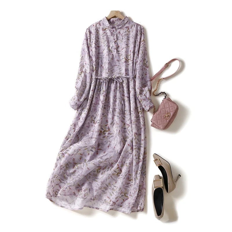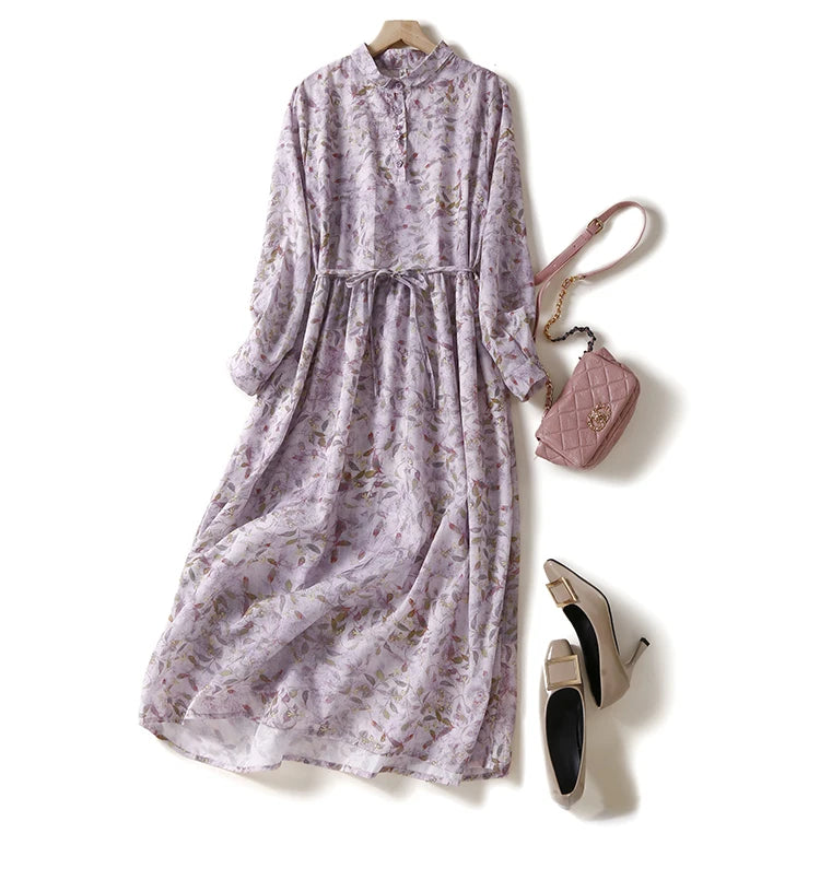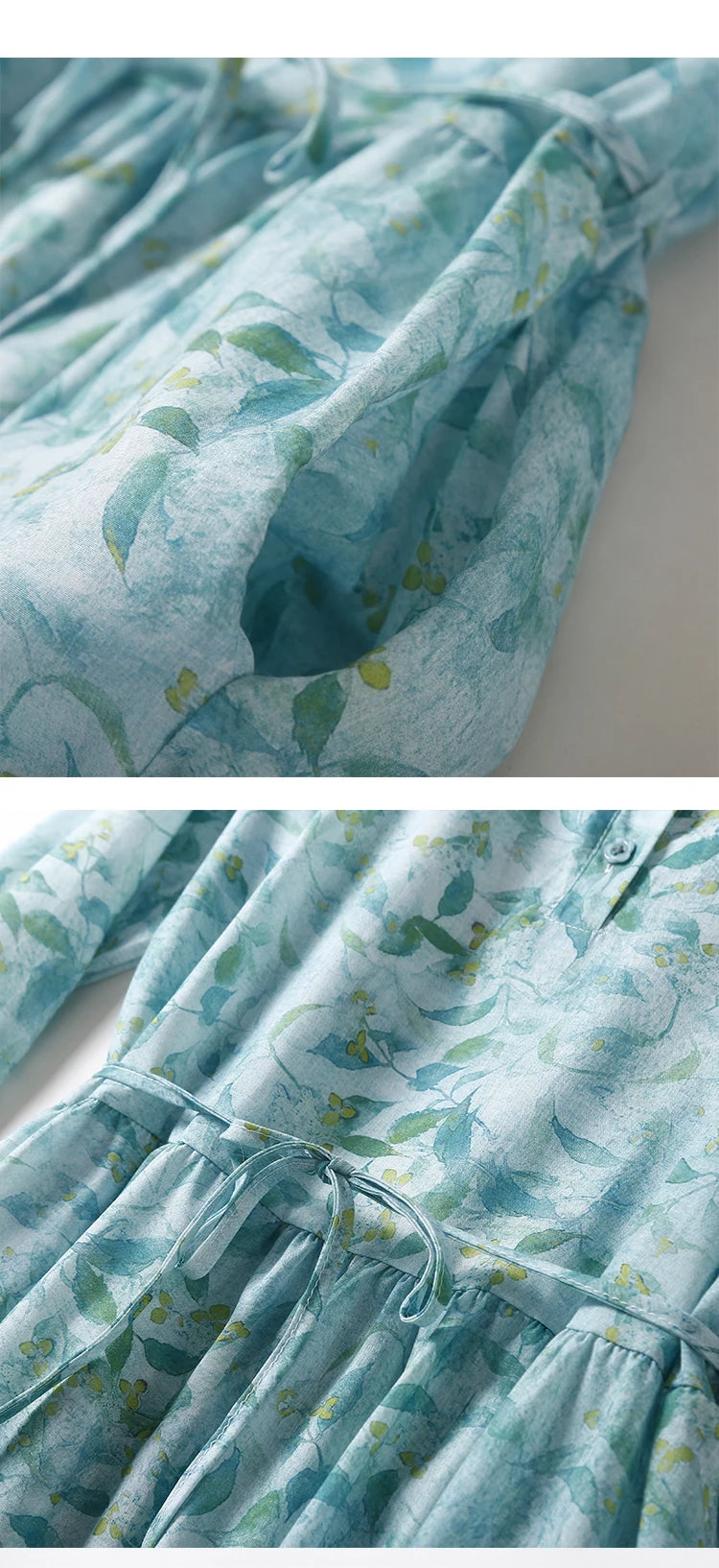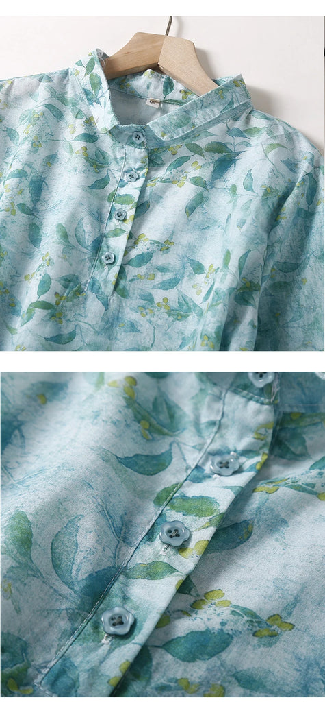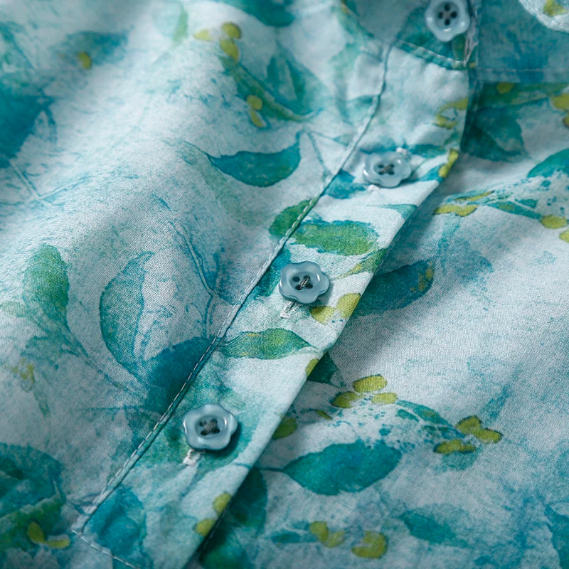 - Design: Floral print, turn-down collar