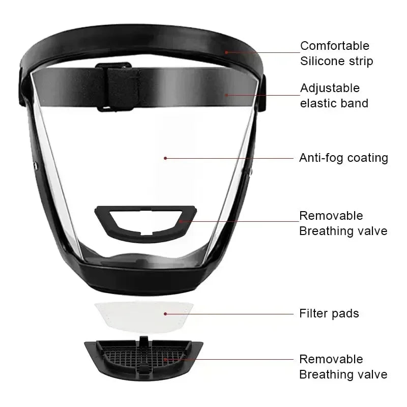 - Complete Protection: Safeguards eyes, nose, and mouth from multiple hazards.