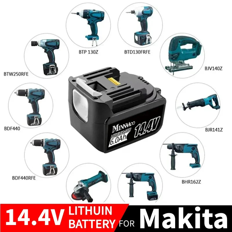 14.4V 6Ah Li-ion Battery Compatible with Makita 14V Power Tools BL1460 BL1430 1415 194066-1 Rechargeable Replacement