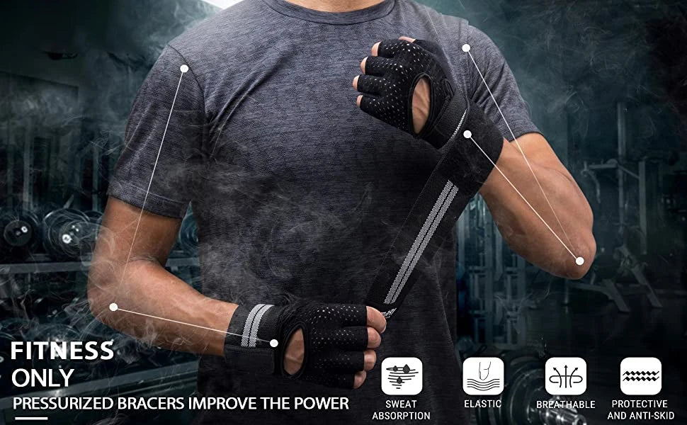 Half Finger Workout Gloves with Wrist Support for Men & Women – Crossfit Weightlifting Fitness Gear