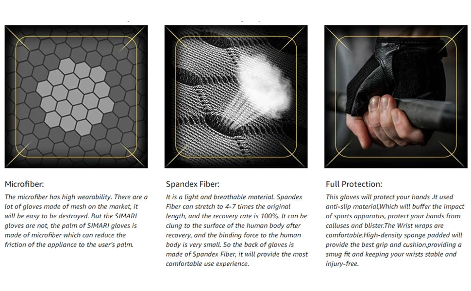 Crafted from breathable, durable microfiber, these gloves allow your hands to move freely and remain comfortable, even during vigorous training sessions. The design includes a convenient pull tab for easy removal post-exercise and absorbent terry cloth on the thumbs to wipe away sweat. Perfect for weightlifting, pull-ups, general workouts, and more, these gloves are an essential addition to your fitness gear.