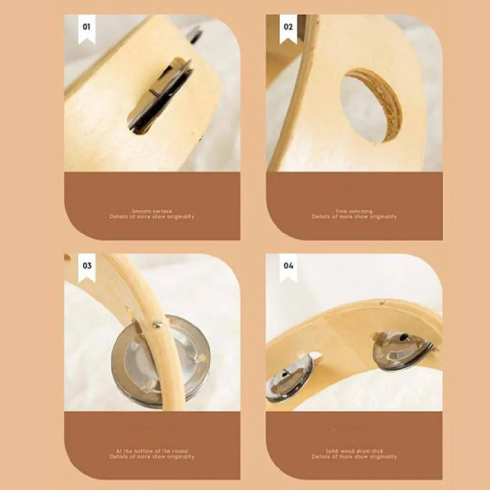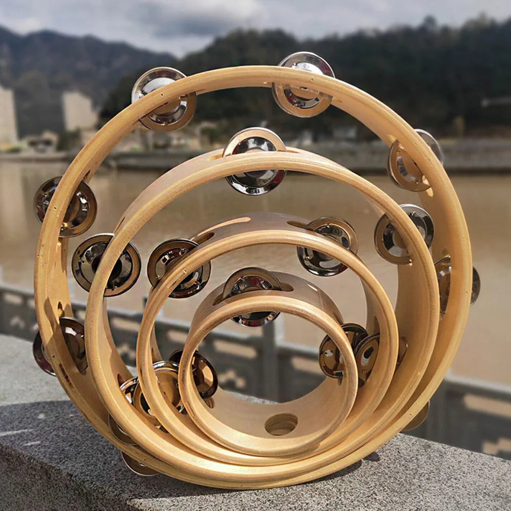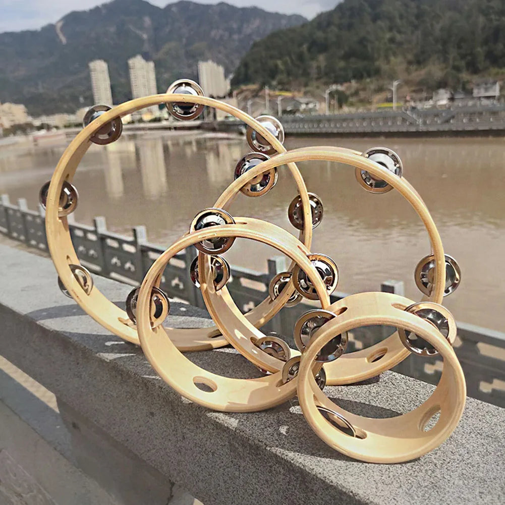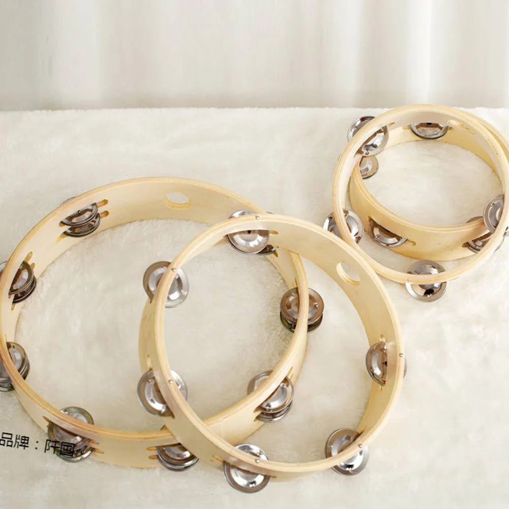 Handheld Wood Tambourine Drum, 4-10in Percussion Instrument