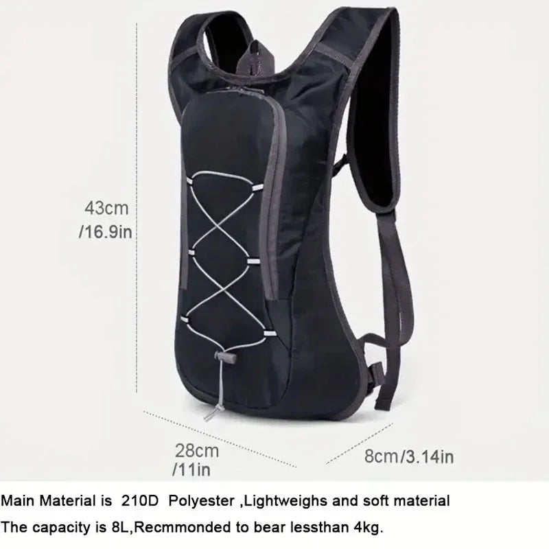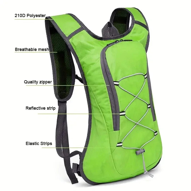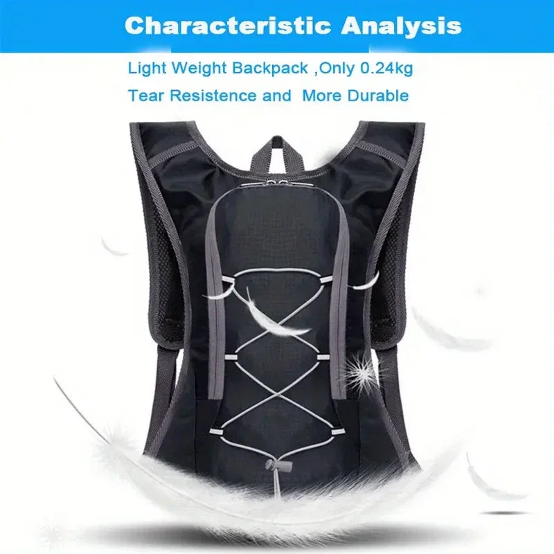 Stay hydrated on your adventures with this versatile 12L backpack, designed for cyclists, hikers, and campers. Featuring a compact design with a dedicated compartment for a 2L BPA-free bladder, this backpack ensures convenience and comfort on the go. Crafted from high-quality nylon, it's lightweight, waterproof, and equipped with an easy-to-use on/off valve. Whether you're biking, hiking, or camping, this backpack provides ample storage for essentials like keys, phones, and snacks. The adjustable chest strap allows for a secure fit, making it a perfect choice for various outdoor activities.