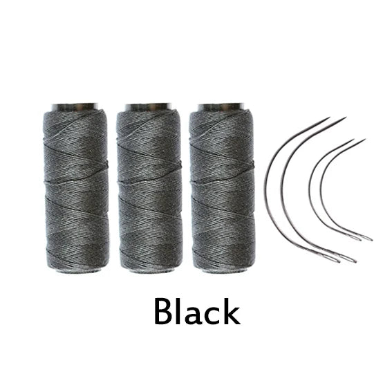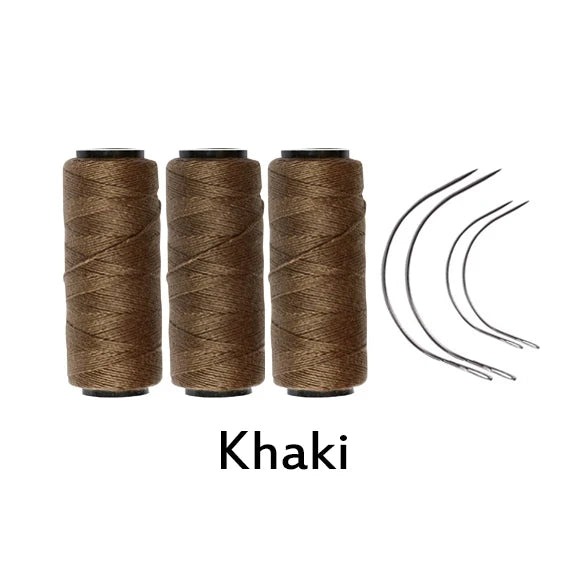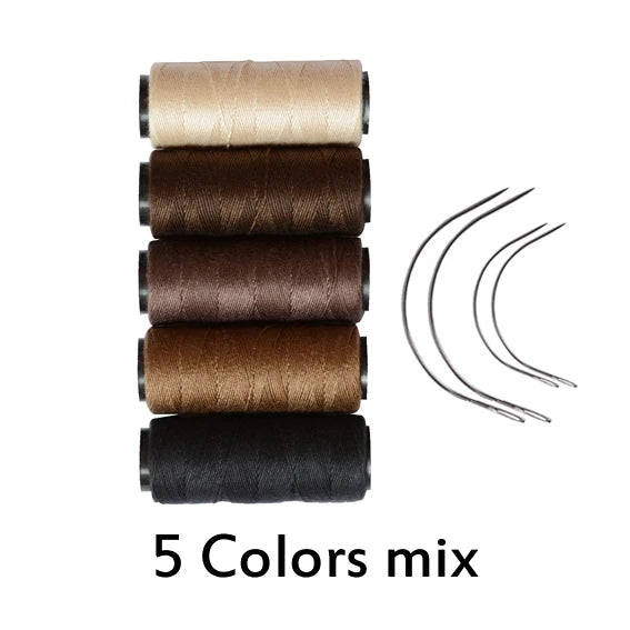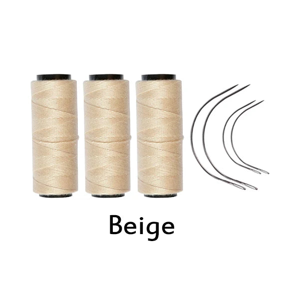 Enhance your hair weaving projects with this versatile hook needle set. Crafted with precision, the stainless steel needles are designed for durability and ease of use. This set includes your choice of 3 or 5 rolls of high-quality weaving thread and a bonus of 4 C-curved needles. The threads, available in Black, Brown, Dark Brown, Beige, and Khaki, offer rich color options to match any style. Each roll provides approximately 60 meters of thread, ensuring you've got plenty for extensive projects. The needles measure 6cm and 9cm, perfect for precise and efficient work.