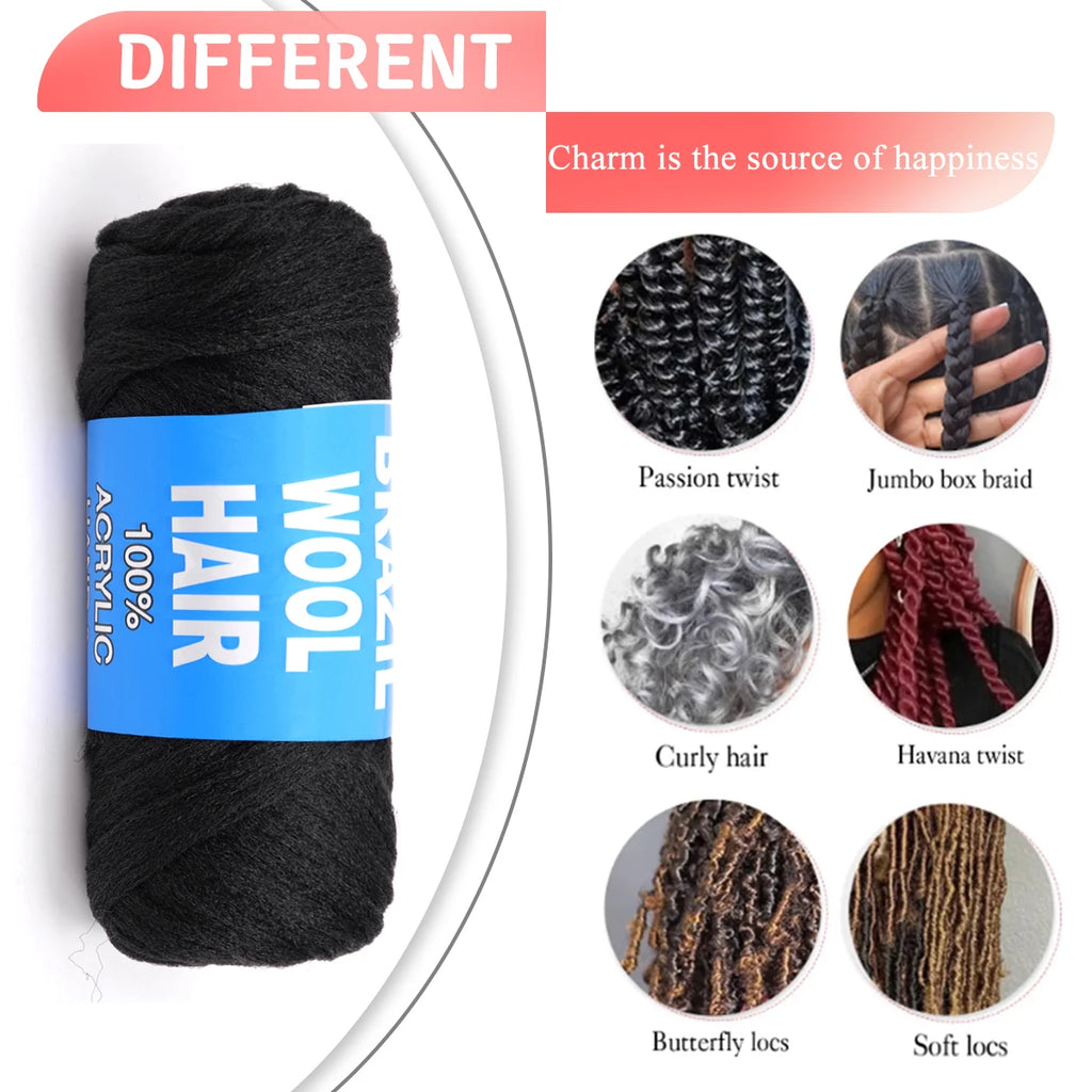 Transform your hairstyle game with our versatile Brazilian Wool Hair Synthetic Crochet Hair Extensions. Perfect for creating stunning Senegalese twists and braids, these extensions are crafted from high-quality high-temperature fiber, providing a natural look with vibrant colors.