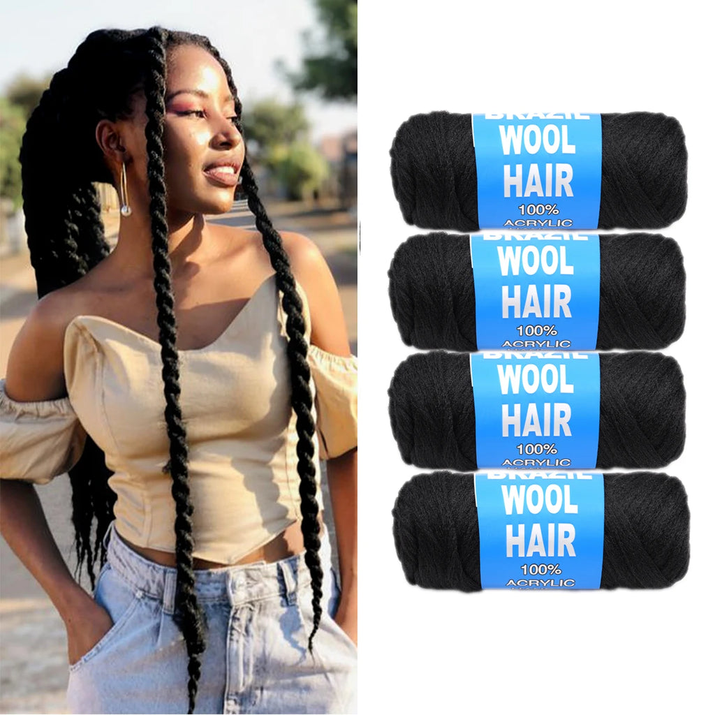 4 Pack Brazilian Wool Crochet Hair Extensions for Braiding, Senegalese Twist, African Hair Yarn for Women