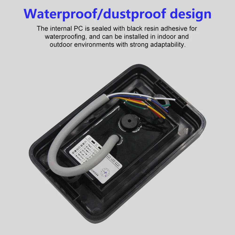 Introducing our Waterproof RFID Reader, a versatile and efficient access control solution designed for both security and ease of use. This smart proximity card reader supports both 125KHz and 13.56MHz frequencies, making it compatible with a wide range of RFID cards. With an IP68 waterproof rating, it is perfect for outdoor and harsh environments, ensuring reliable performance even in challenging conditions.