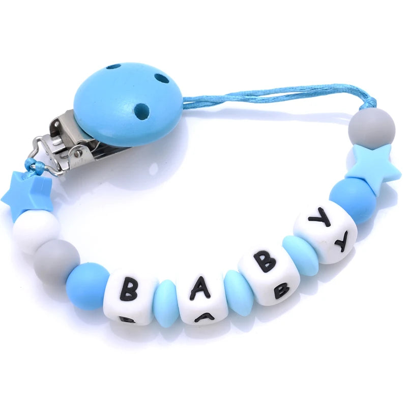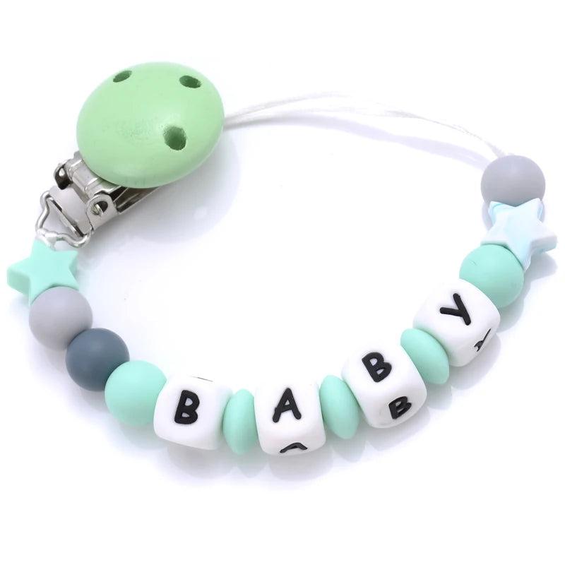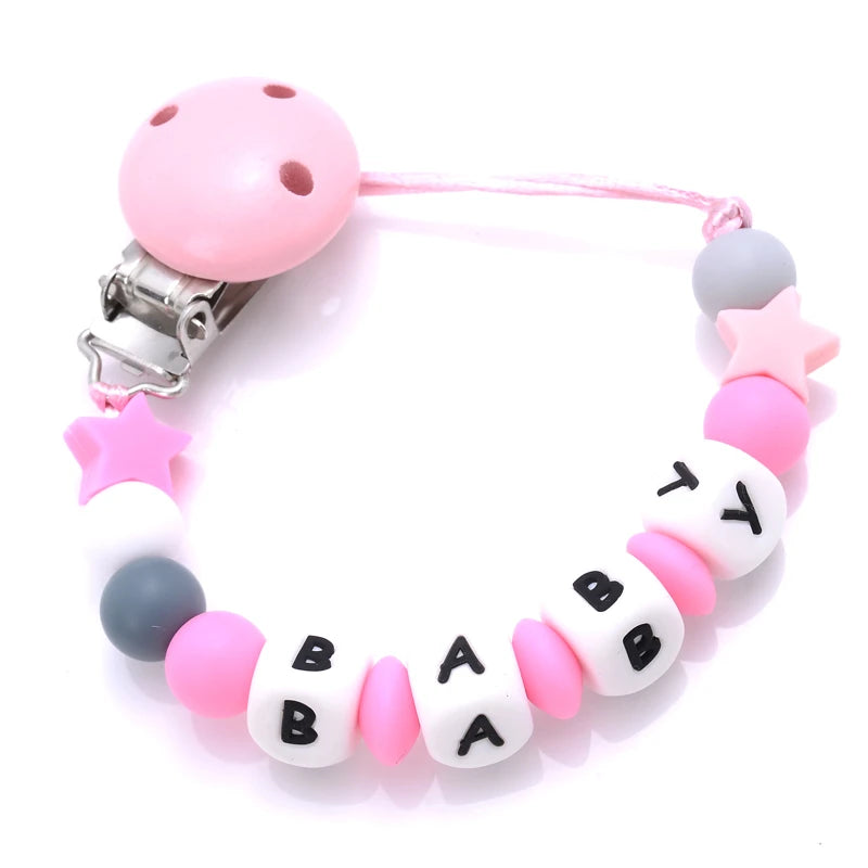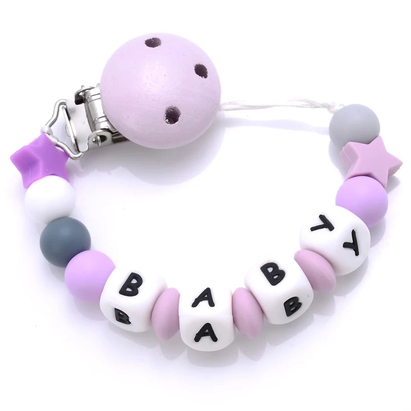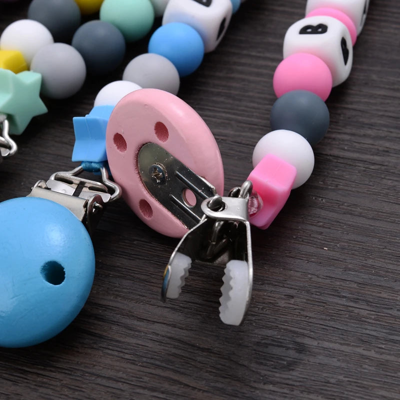 Handmade Baby Teether Pacifier Clip - Silicone Beads, Personalized Name Soother Chain, Nipple Clip for Infants
