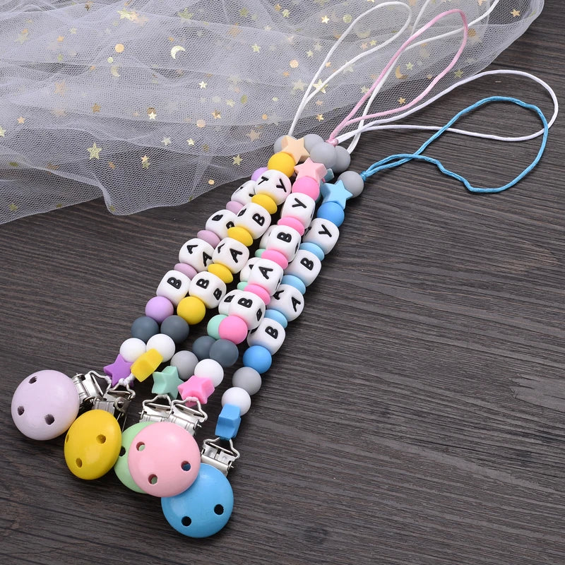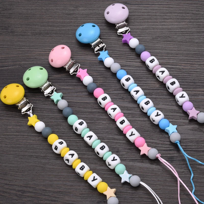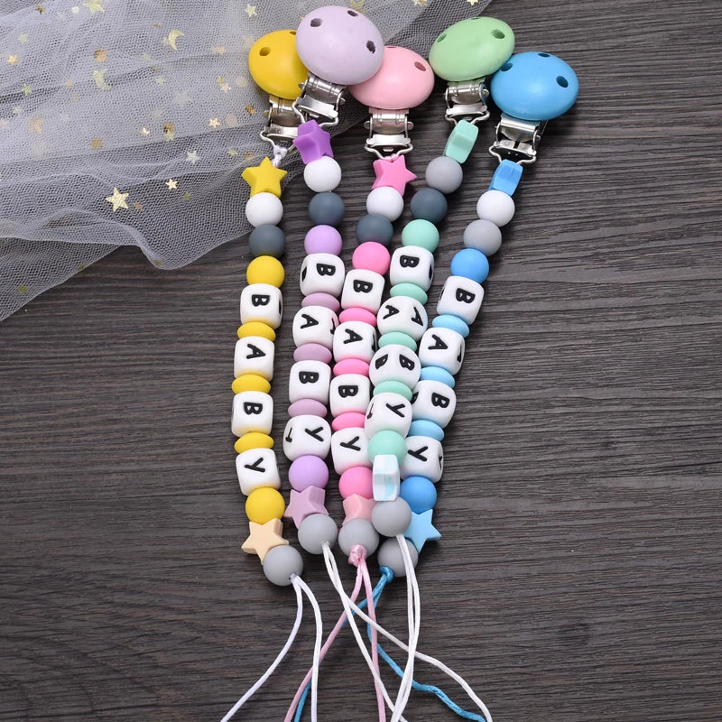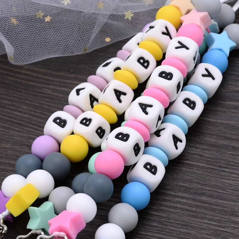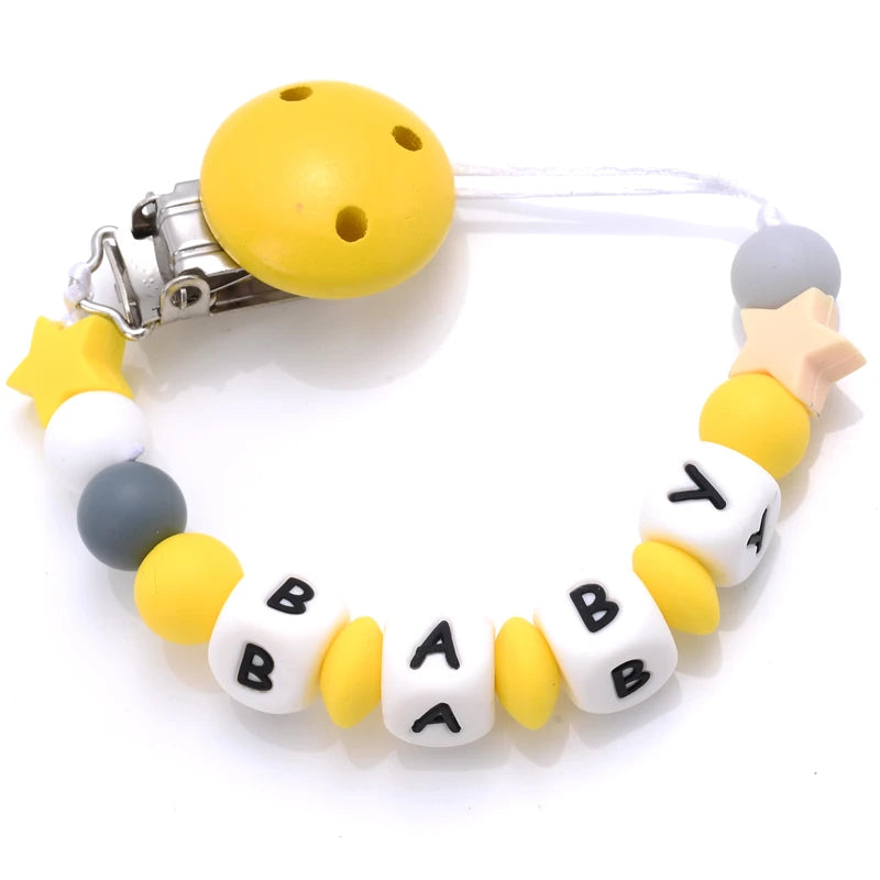 Handmade Baby Teether Pacifier Clip - Silicone Beads, Personalized Name Soother Chain, Nipple Clip for Infants