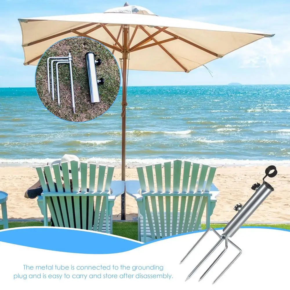 Beach Umbrella Sand Anchor Ground Holder Stand Outdoor Steel Base Detachable Sturdy Garden Stakes