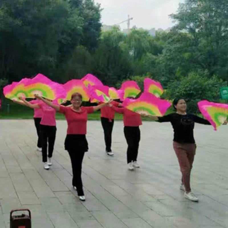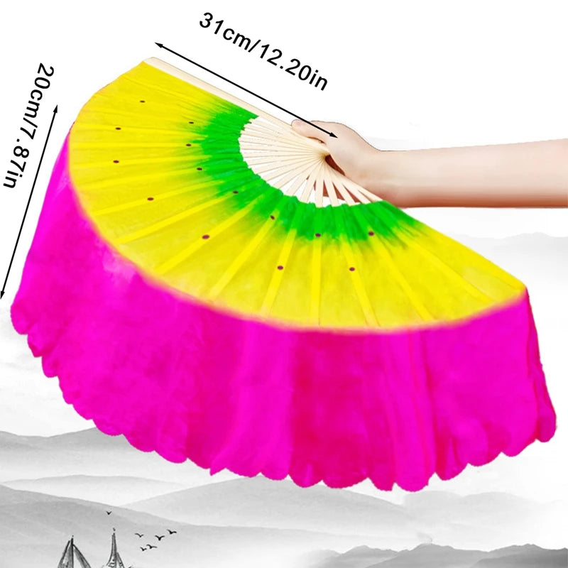 Chinese Belly Dance Fans Bamboo 30cm Silk Veil 20cm Half Circle Yangko Hand-Dyed Pairs for Adults