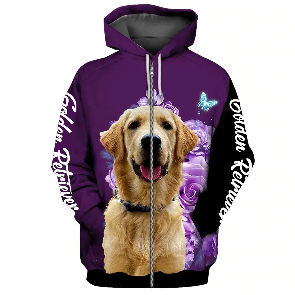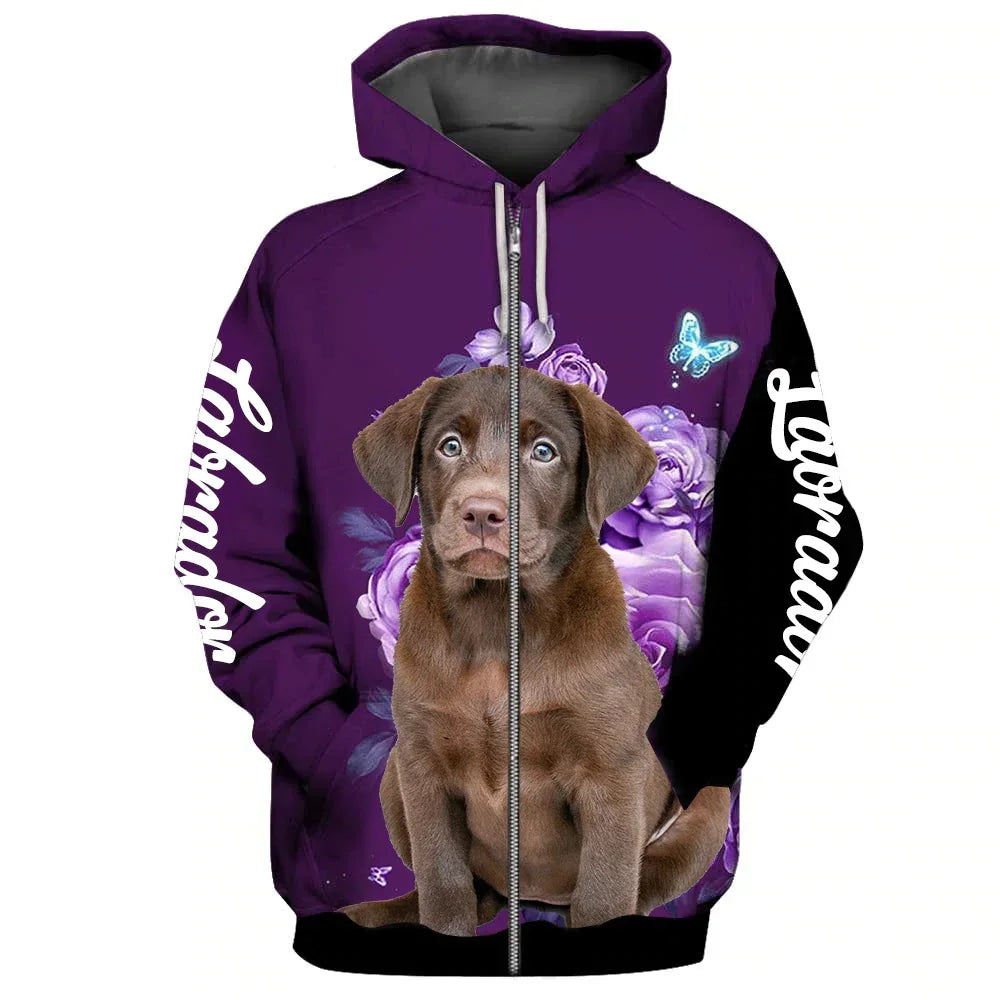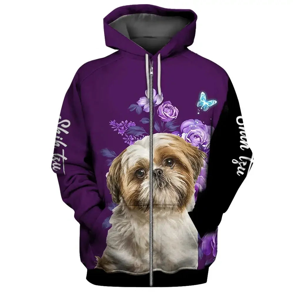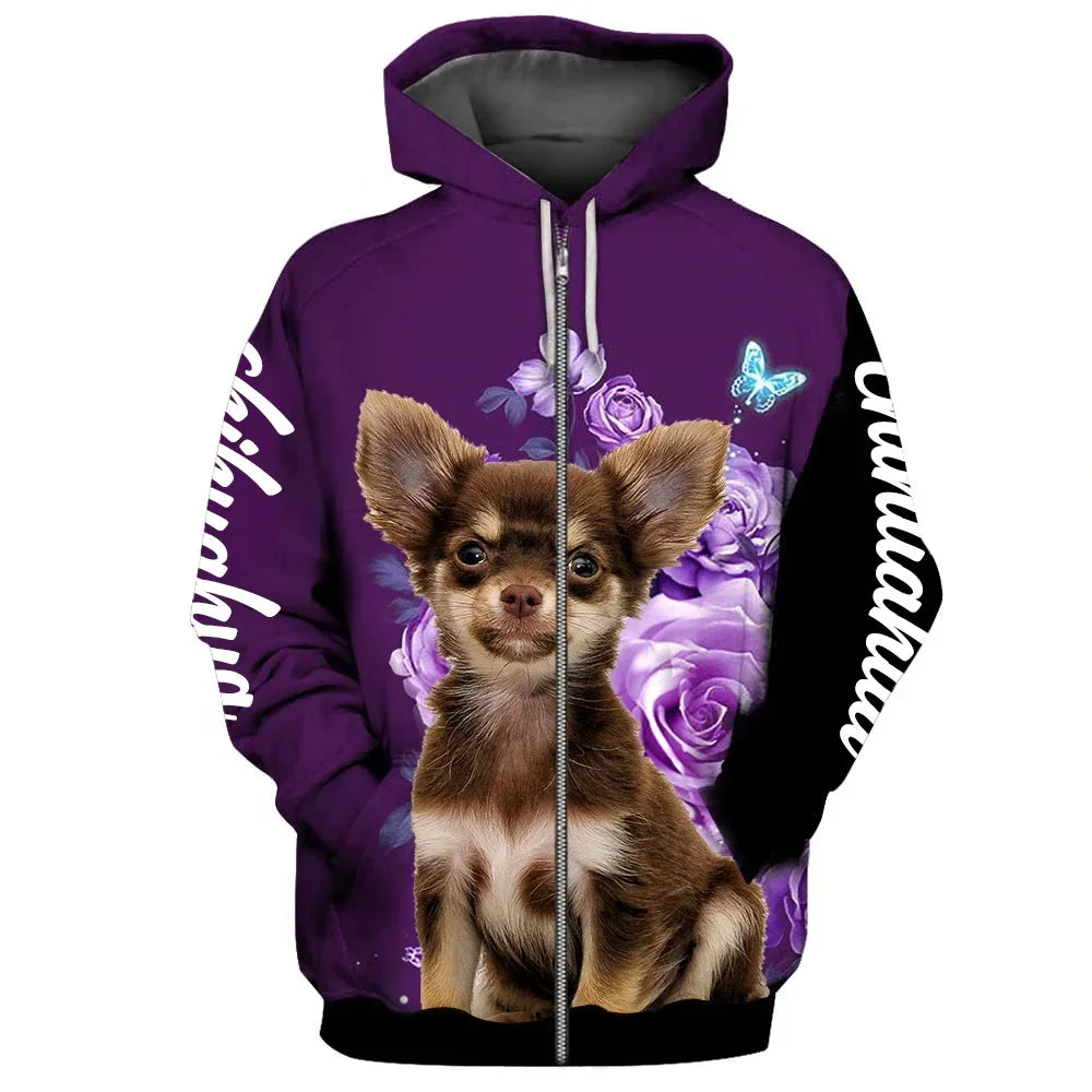 Chihuahua Puppy Zip Hoodie Women Floral Graphic Casual Sportswear Dog Lover Top
