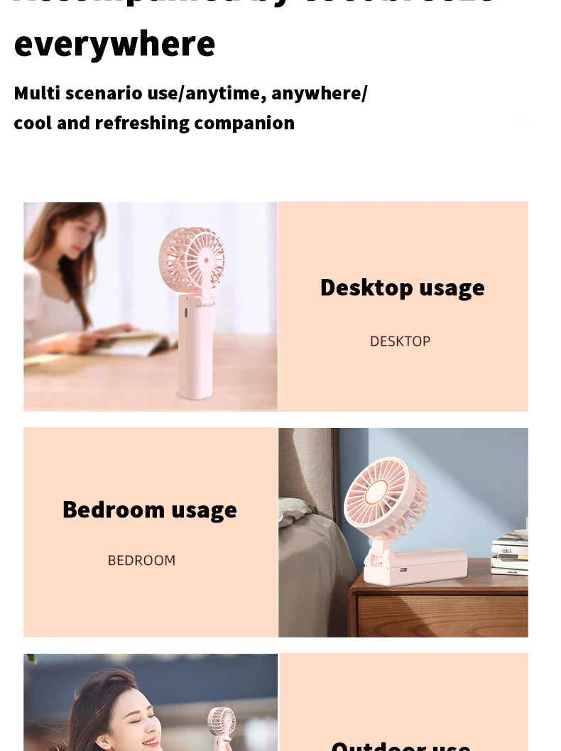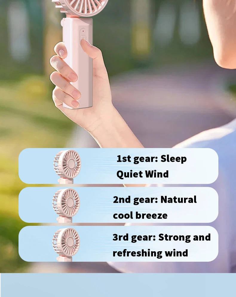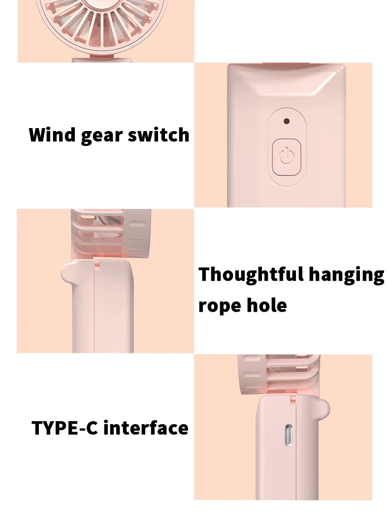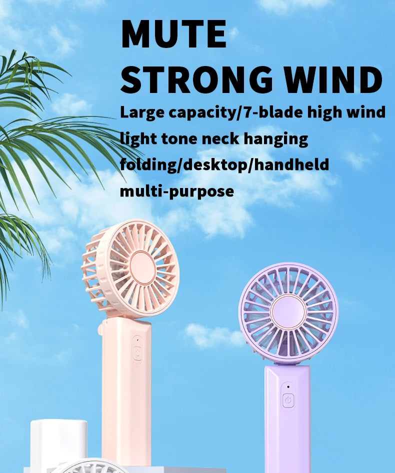 Handheld Mini Portable USB Rechargeable Neck Fan Foldable Desktop Fan for Outdoor Use
