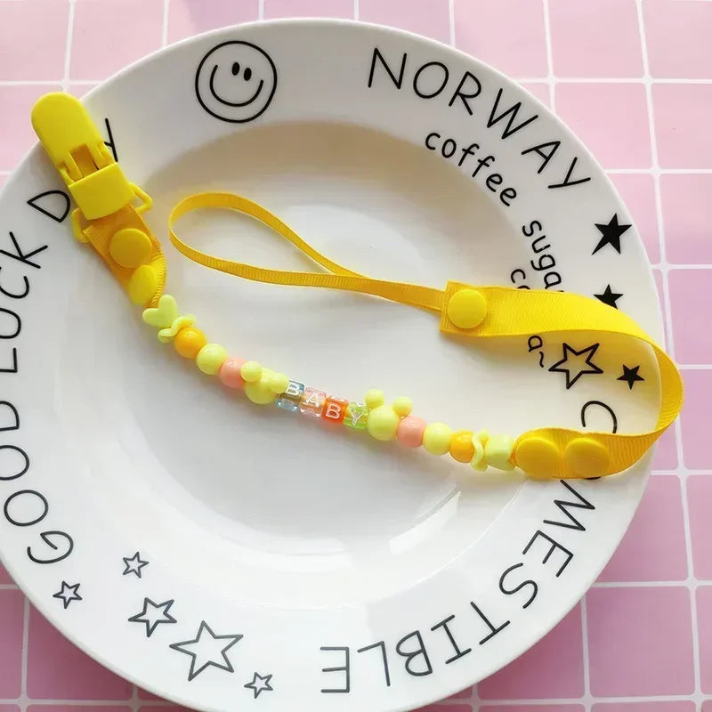 Introducing our charming Pacifier Clips, designed to keep your baby's pacifier close and clean. Made from durable polyester and accented with acrylic beads, these clips are both stylish and practical. Perfect for babies from newborn to 3 years old, they ensure the pacifier is always within reach, preventing it from getting lost or dirty.