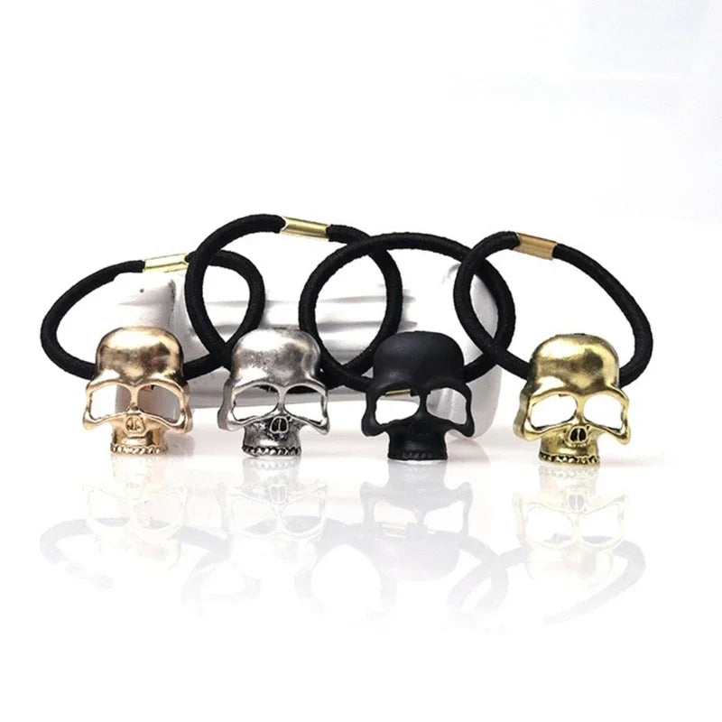 Enhance your style with these fashionable Skull Elastic Hair Bands, perfect for adding a unique touch to any casual or special occasion outfit. These unisex hair ties are crafted from durable alloy and elastic material, ensuring they securely hold your hair without causing damage. Whether you're attending a party, ceremony, or just going about your day, these versatile hair accessories provide both practicality and flair. Available in silver, copper, black, and gold, they offer a comfortable fit for most hair types.