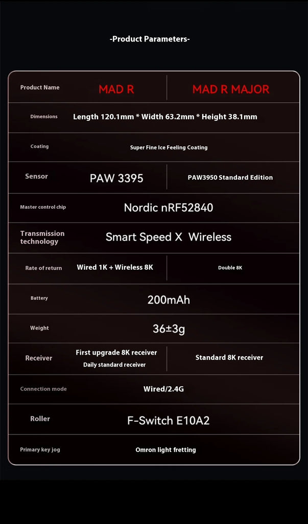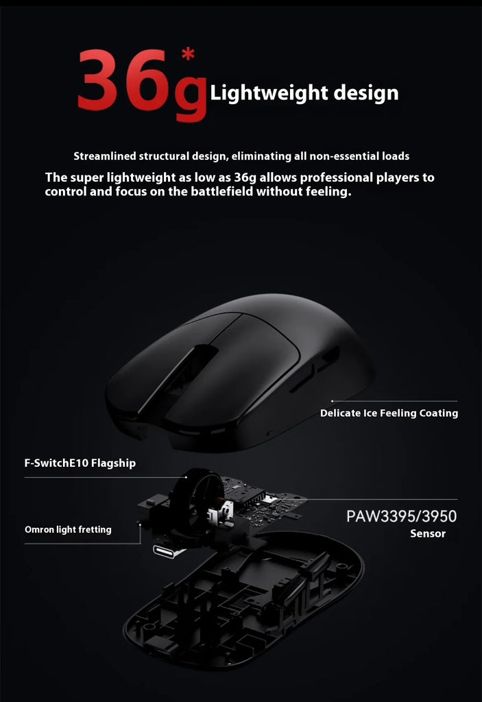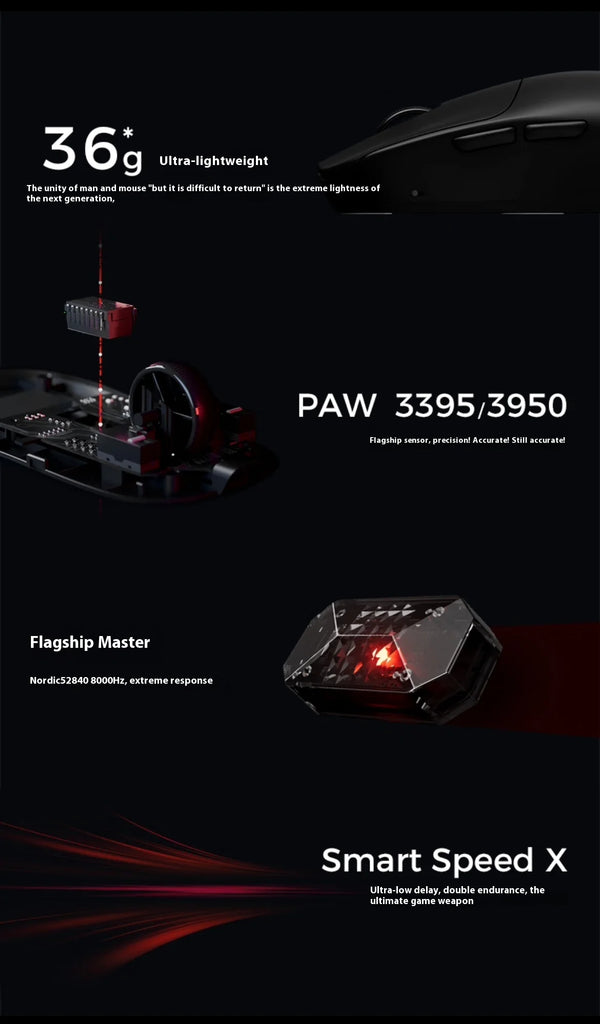 Dual-Mode RGB Lightweight Gaming Mouse, Ergonomic Design, 8K DPI, Nonporous, PAW3395/3950 Sensor
