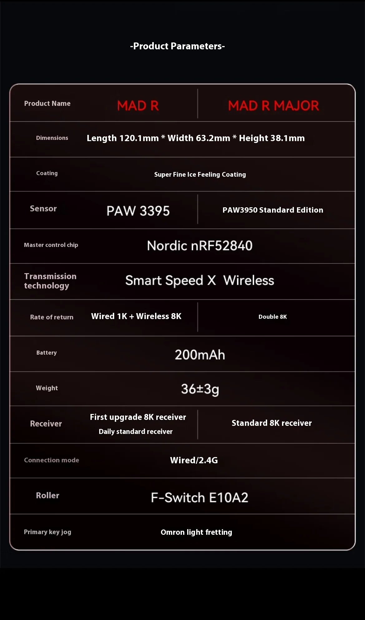 - Connectivity: 2.4GHz wireless with USB interface
