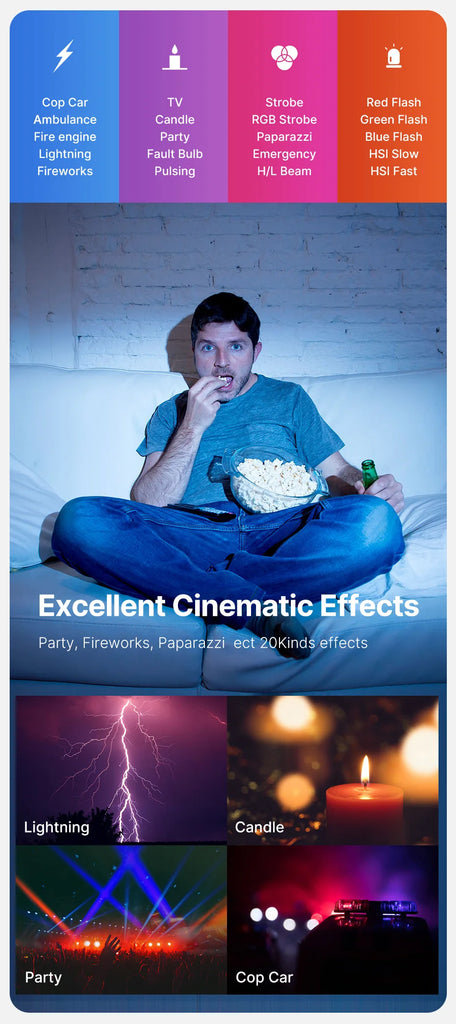 Enhance your projects with 20 dynamic light effects tailored to various scenes. Featuring a clear LCD display, you can easily make precise adjustments to your settings for optimal results.