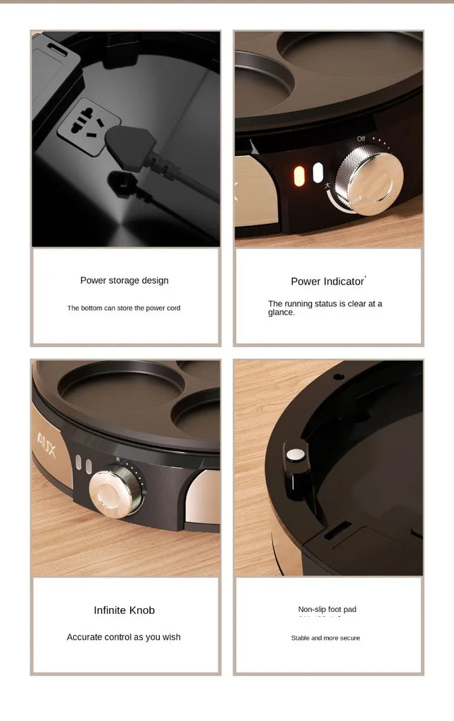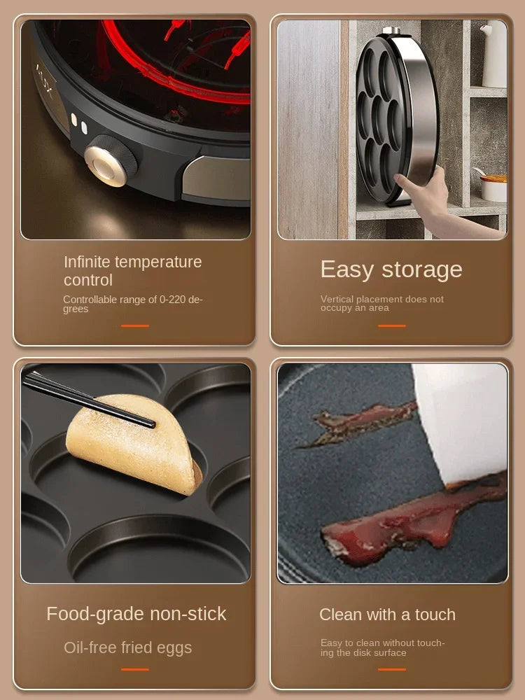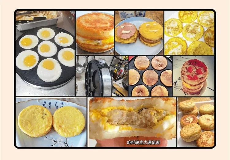 220V Multi-Hole Crepe Maker for Eggs, Burgers, Crepes & Omelettes – Perfect Breakfast Baking Pan
