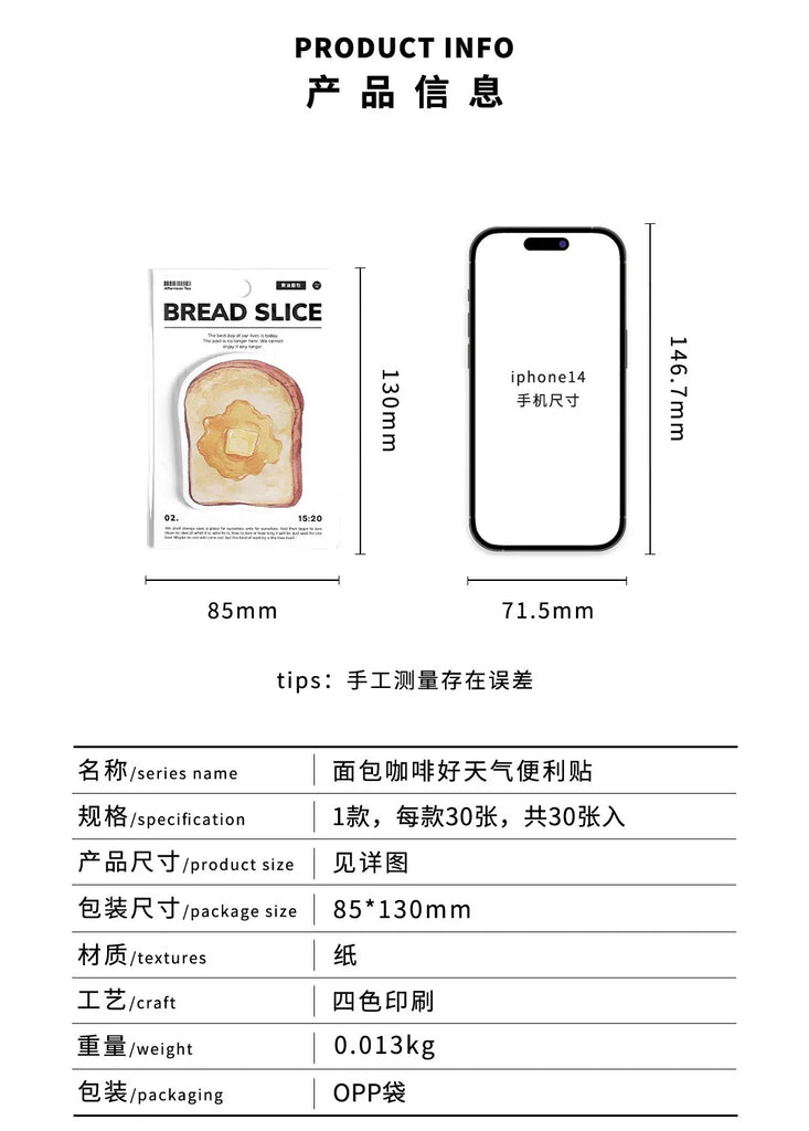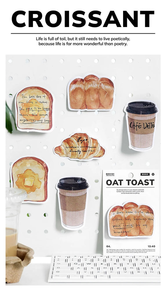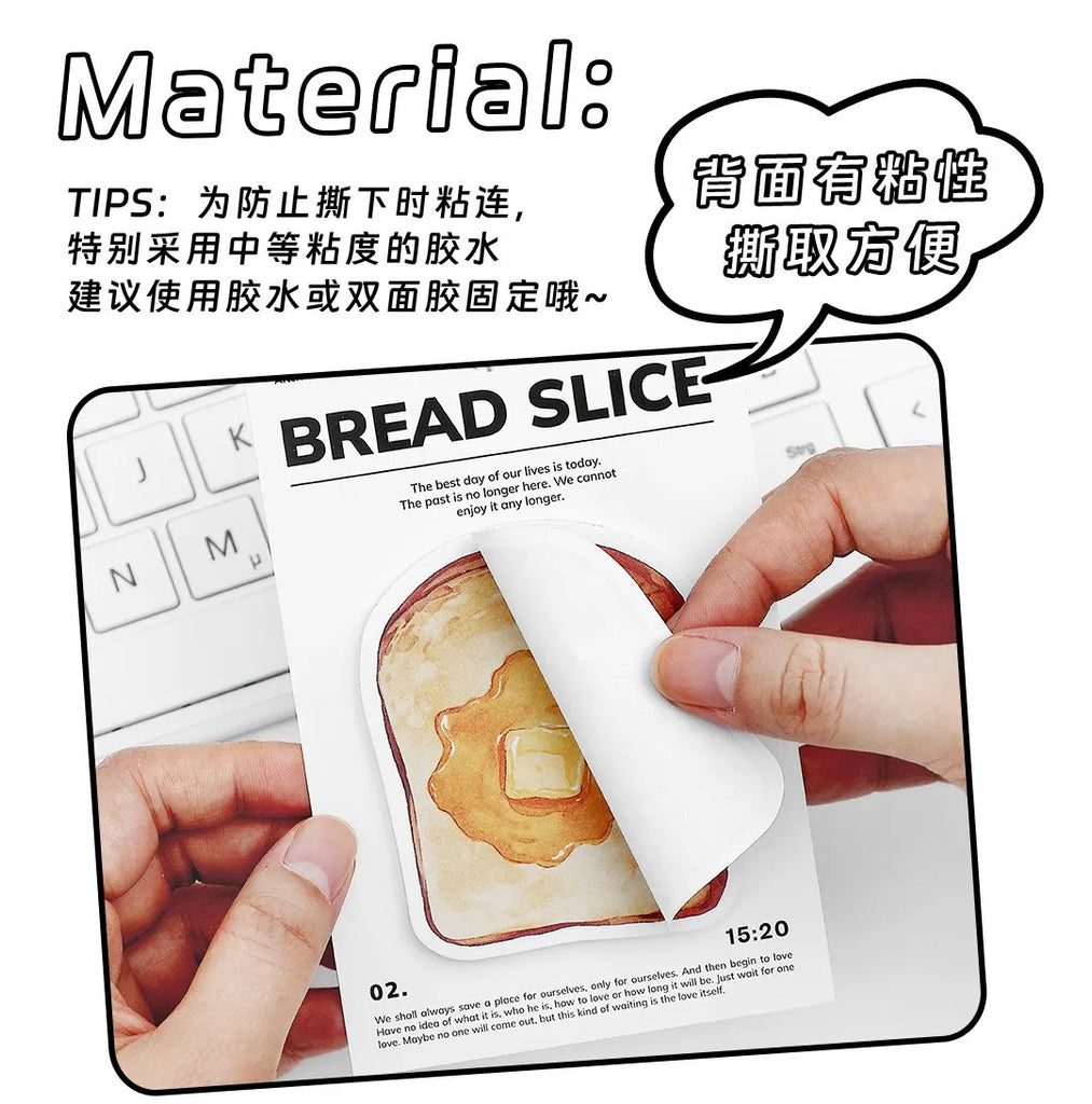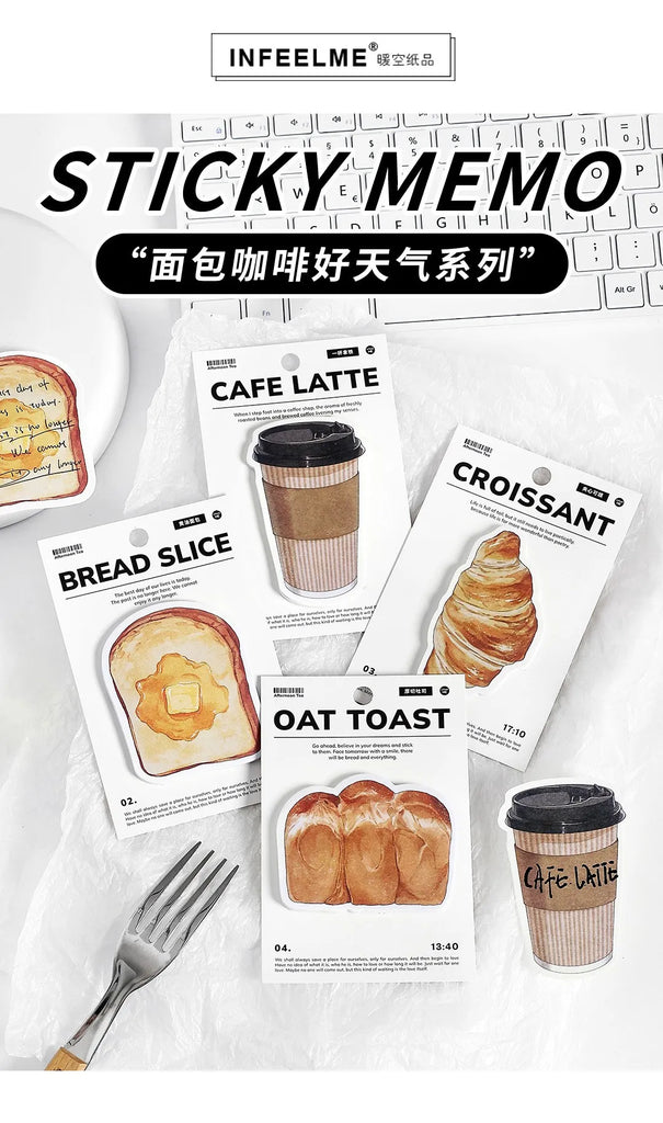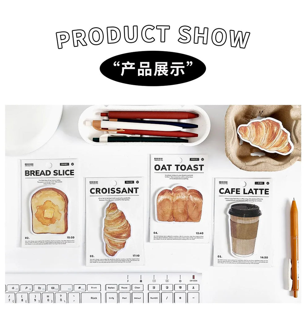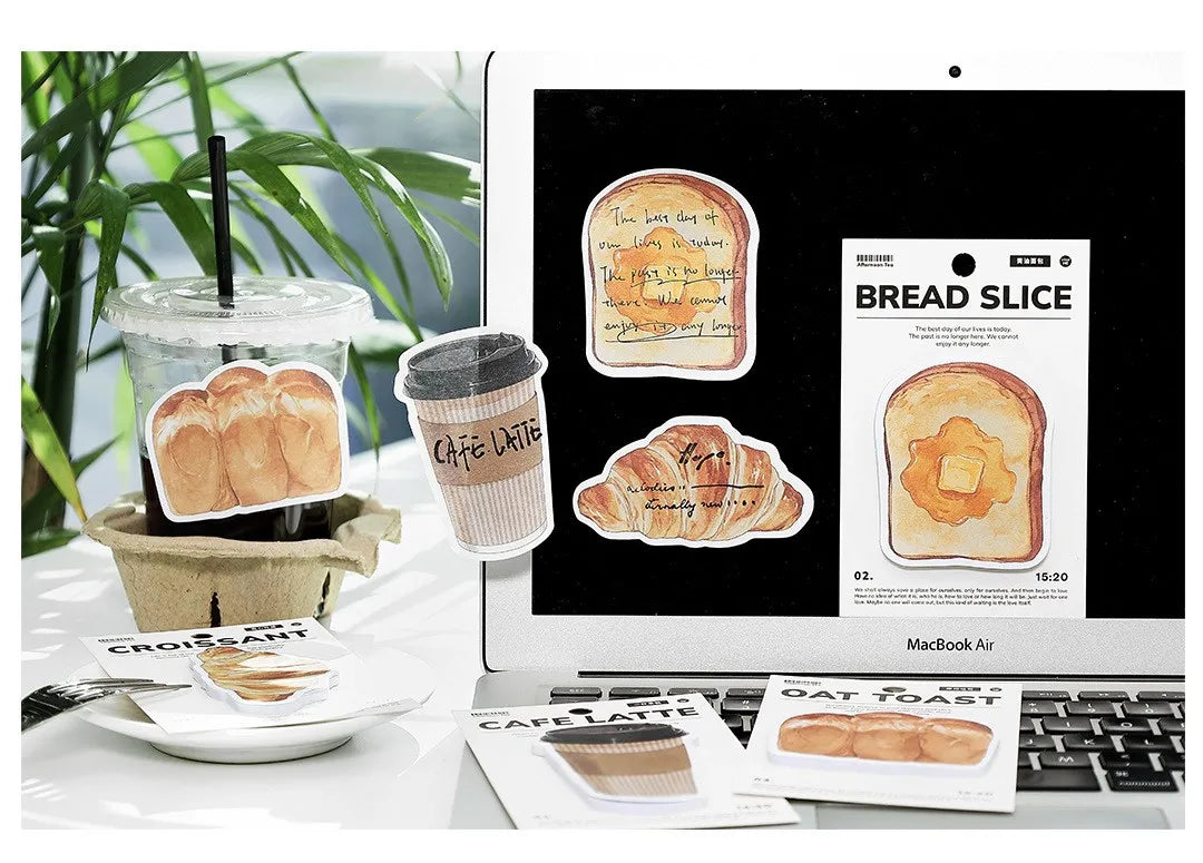 30pcs Cartoon Sticky Notes Kawaii Bread Toast Coffee Memo Pads for Student & Office