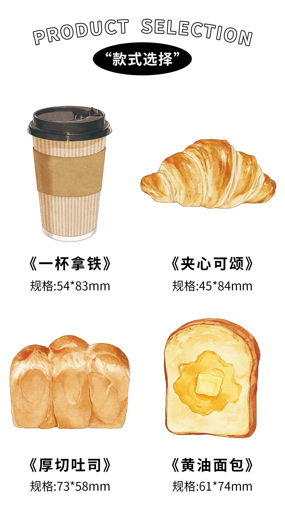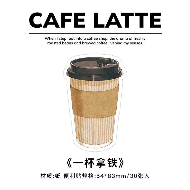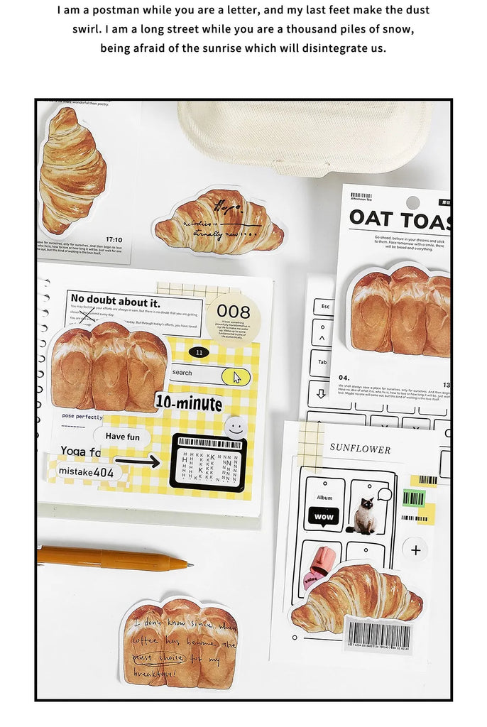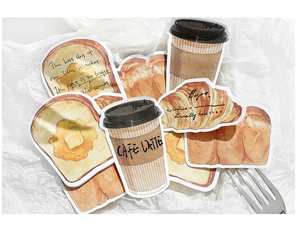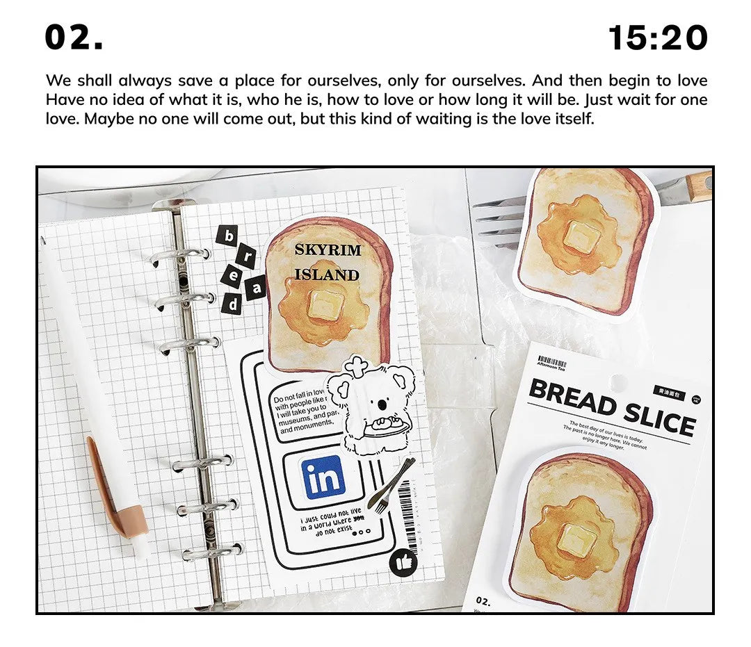 30pcs Cartoon Sticky Notes Kawaii Bread Toast Coffee Memo Pads for Student & Office