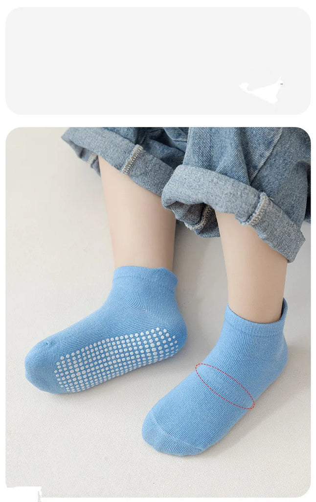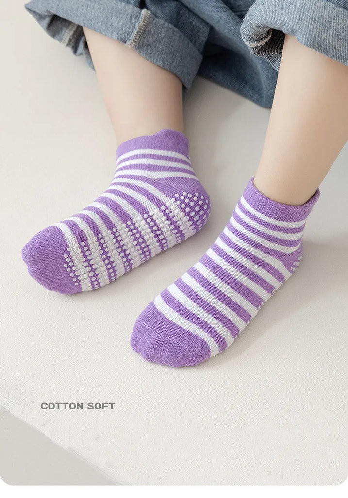 These socks are thoughtfully designed for children to ensure both safety and comfort during everyday activities.