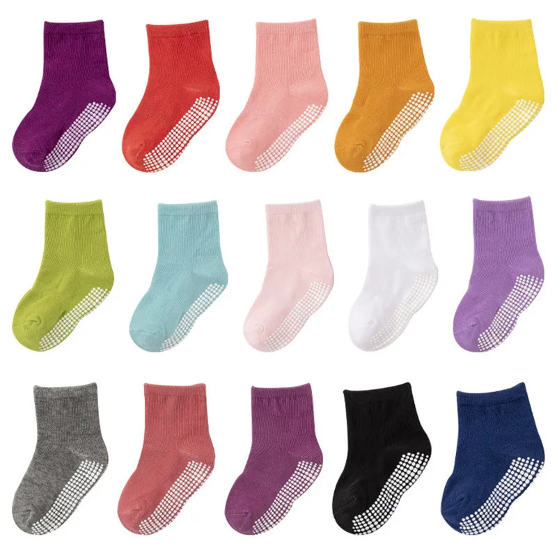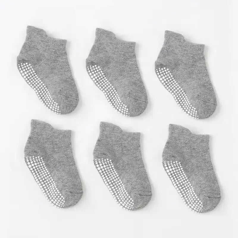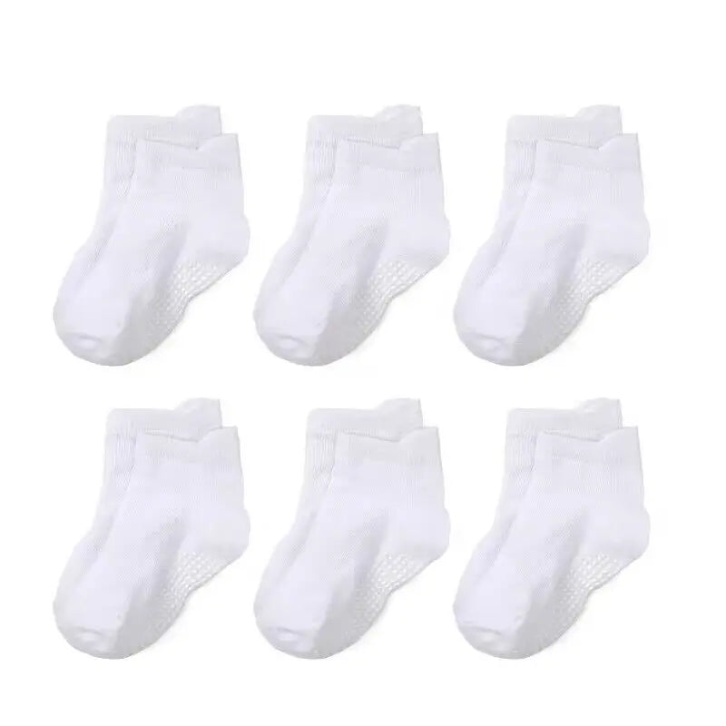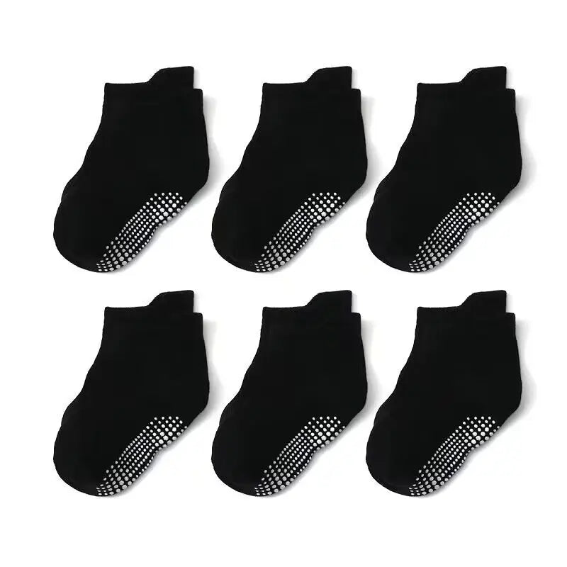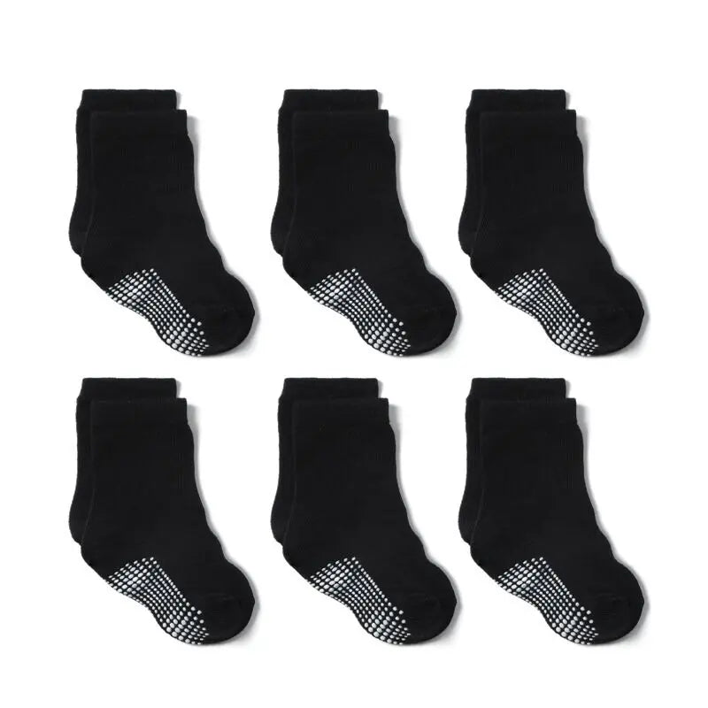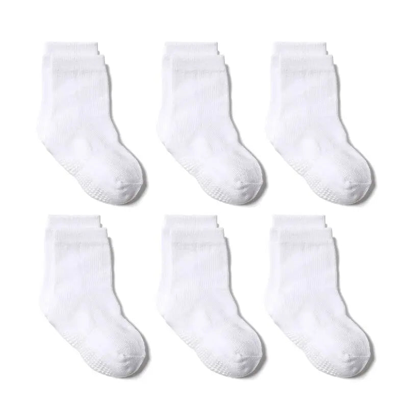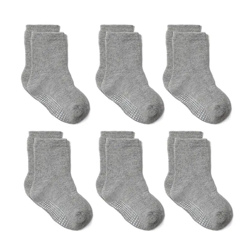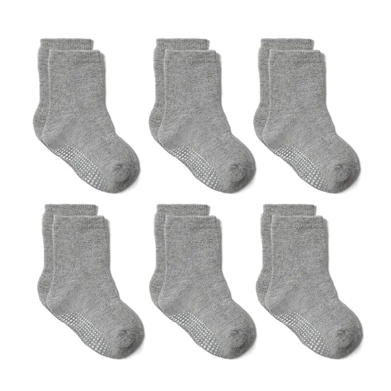 6 Pairs Anti-Slip Cotton Socks with Rubber Grips for Kids Ages 1-7