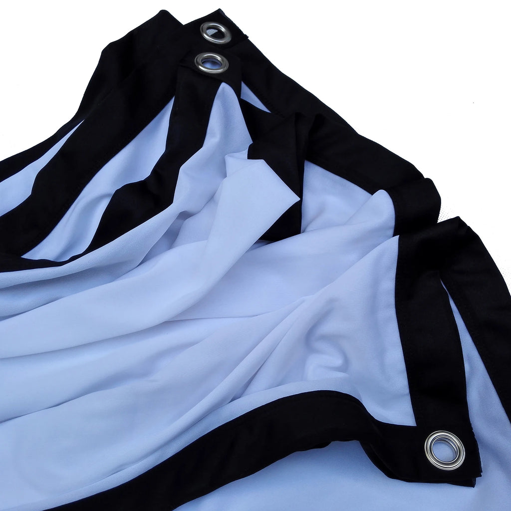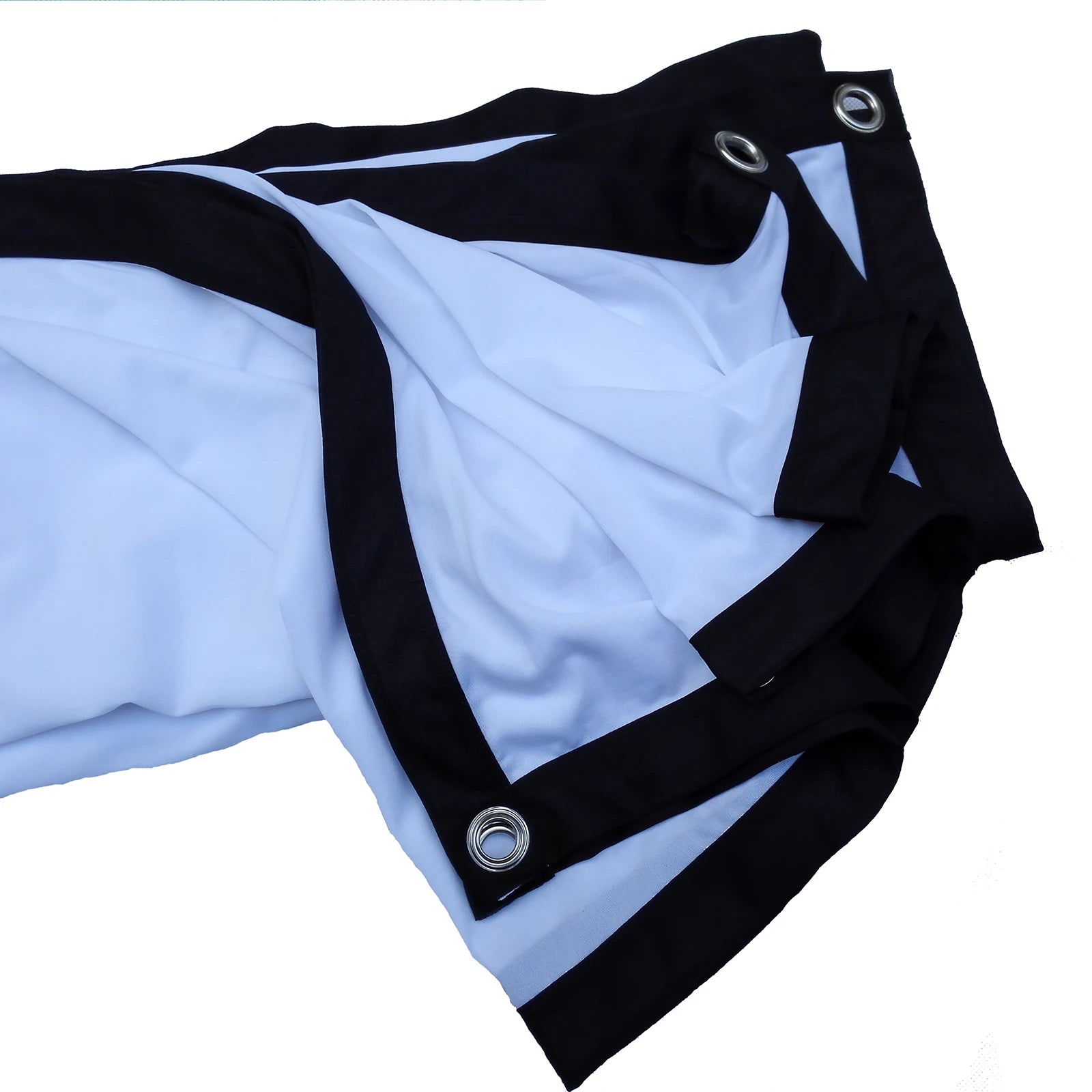 Made from wrinkle-free polyester material, this screen offers a smooth surface for optimal image clarity, supporting both front and rear projection. Its compact, foldable nature allows for convenient storage, making it ideal for small spaces and on-the-go use. The screen is designed with black edges and eyelets, enabling easy installation with hooks, nails, tape, or ropes. Additionally, it is machine washable, ensuring maintenance is hassle-free.