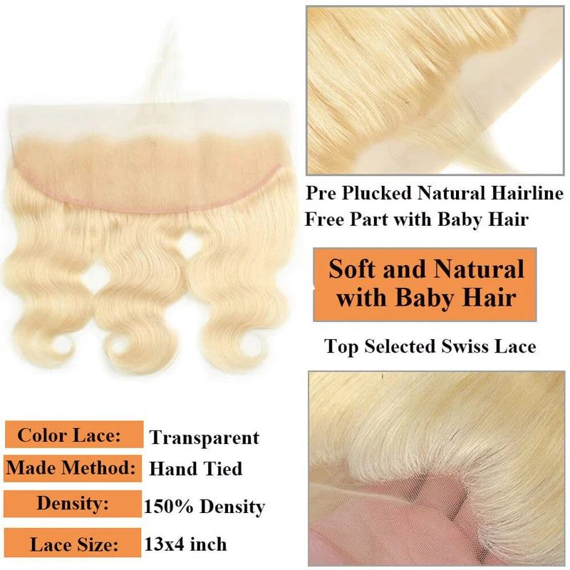 Blonde Body Wave 613 Human Hair Lace Front Wig 13x4 Transparent Pre-Plucked Brazilian Virgin 10-22 Inch