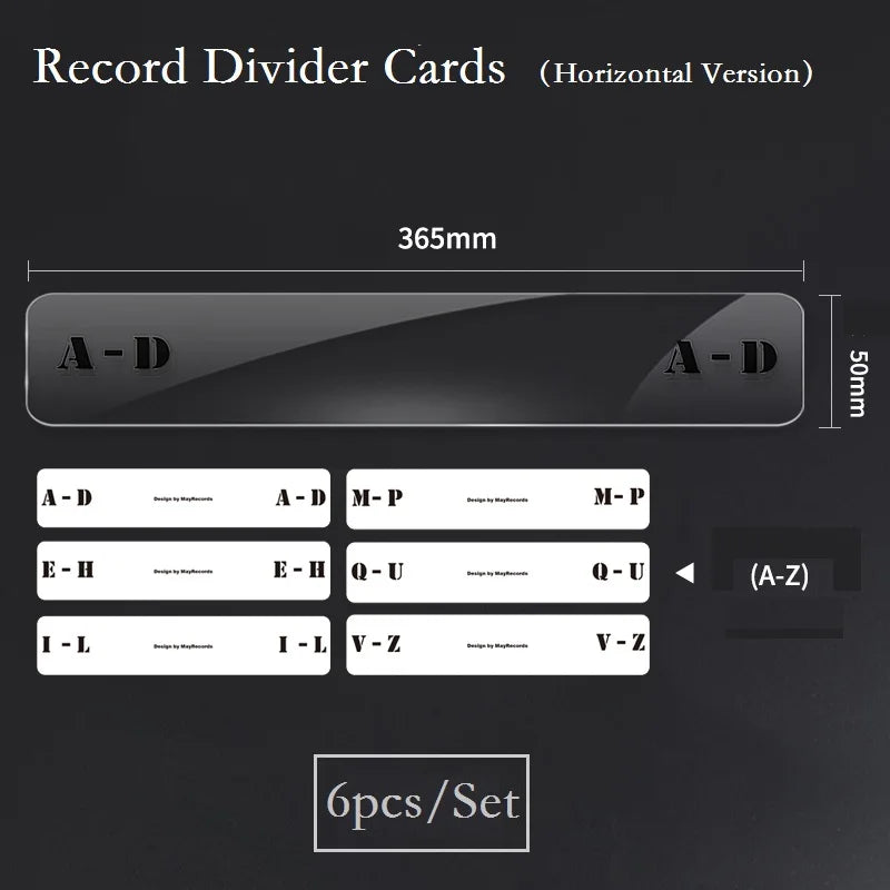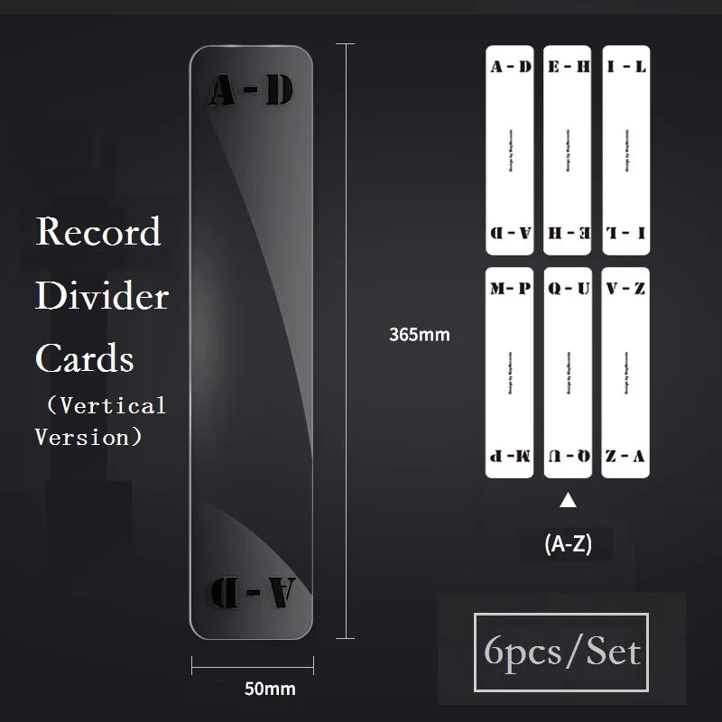 6pcs Vinyl Record Divider Alphabet Index Cards - Acrylic Transparent Horizontal/Vertical LP/CD Organization Tabs