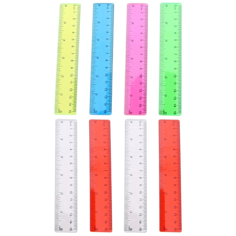 Introducing our versatile set of 8 colorful plastic rulers, perfect for a wide range of applications. Crafted from high-quality, durable plastic, these rulers feature easy-to-read, transparent designs that enhance efficiency in any task. With dual measurement capabilities, each ruler displays centimeters on one side and inches on the other, making them a practical tool for students, teachers, architects, and artists alike.